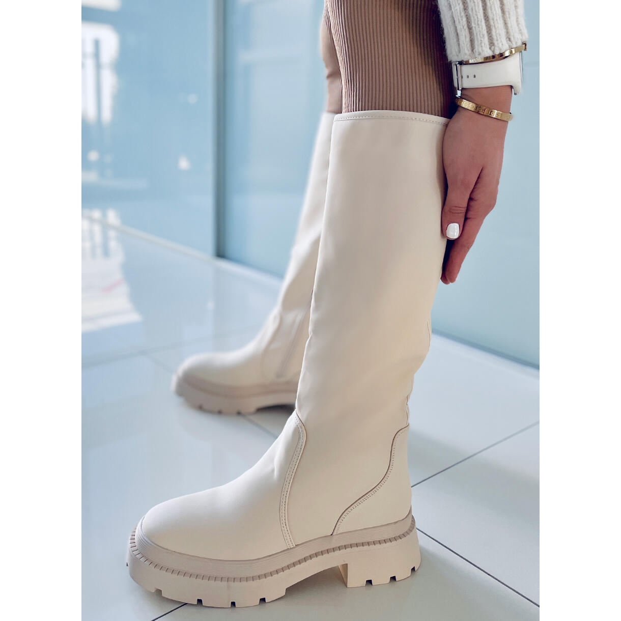 Die bis zum Knie reichende Höhe der Stiefel und die Innenisolierung machen sie zu einer tollen Lösung an kälteren Tagen. Darüber hinaus lässt sich die universelle beige Farbe problemlos mit einer Vielzahl von Kleidungsstücken kombinieren, von Jeans bis hin zu eleganten Kleidern.