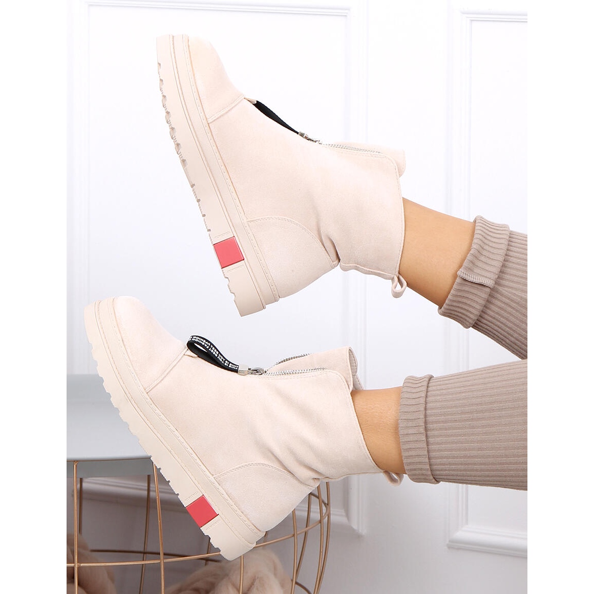 Pitt Beige Stiefeletten sind die perfekte Wahl für Frauen, die einen sportlichen Look wünschen, ohne auf Eleganz zu verzichten. Dank der glatten, beigen Oberfläche lassen sich diese Stiefel problemlos zu verschiedenen Stilen kombinieren – sowohl zu Jeans als auch zu einem lässigen Rock.