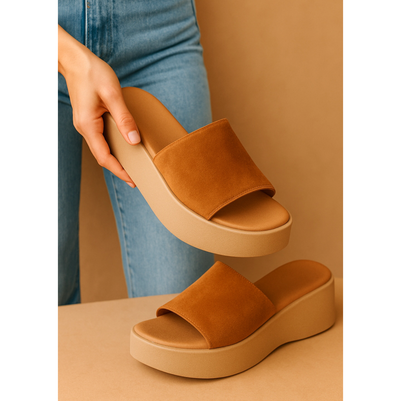 Wildlederplattformen erfordern eine sorgfältigere Pflege. Bürsten Sie sie regelmäßig mit einer Gummi-Wildlederbürste, die Staub entfernt und die Härchen des Materials anhebt. Imprägnieren Sie sie vor dem ersten Gebrauch und regelmäßig während der gesamten Saison mit einem Präparat, das vor Feuchtigkeit und Flecken schützt. Vermeiden Sie an regnerischen Tagen das Tragen von Wildleder-Flip-Flops. Sollten Flecken auftreten, verwenden Sie einen speziellen Wildleder-Radierer oder lassen Sie die Schuhe professionell reinigen.