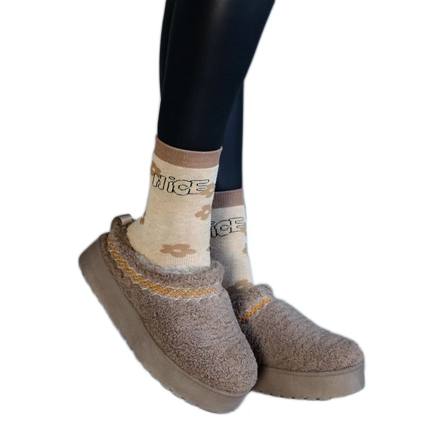 Entdecken Sie Schneestiefel auf einer Plattform mit einem niedrigen oberen und einem greene -embrodered -Muster in beige Farbe - perfekte Schuhe für Wintertage, die Stil, Komfort und Funktionalität verbinden. Dank des runden Zehs und der niedrigen Obermaterial sind diese Flip -Flops extrem praktisch und der eingefügte Schnitt sorgt dafür, dass das Anziehen und Entfernen der Einfache.