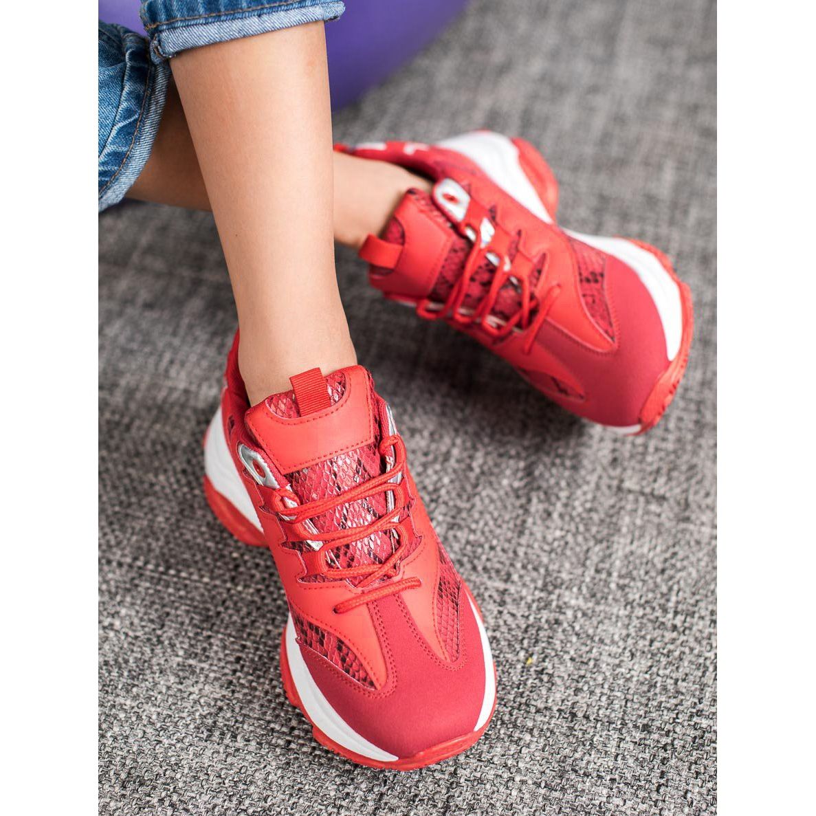 Die roten Damen-Sneaker von SHELOVET sind die perfekte Wahl für Frauen, die ihrem Styling einen einzigartigen Charakter verleihen möchten. Diese Sportschuhe zeichnen sich durch eine intensive, ausdrucksstarke Farbe aus, die mit Sicherheit die Aufmerksamkeit auf sich zieht und jedes Alltags-Styling belebt.