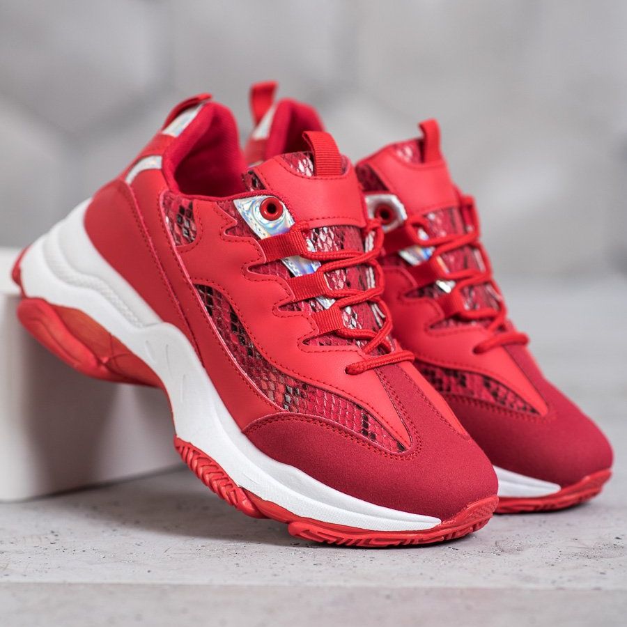 Details: SHELOVET Plateau-Sneaker mit Schlangenprint rot