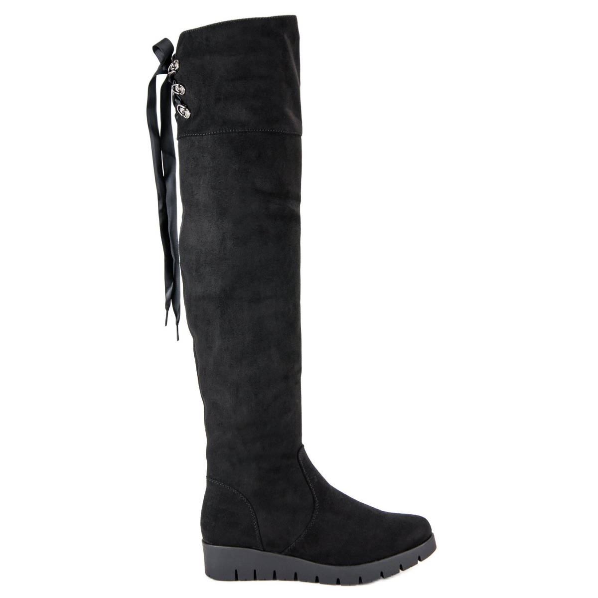 Der hohe Schaft, der über das Knie reicht (54–55 cm), schmiegt sich wunderbar an das Bein und der zarte 3 cm hohe Keilabsatz lässt die Wade schlanker wirken. Dank der weichen Fellisolierung halten diese Stiefel Sie auch an den kältesten Tagen warm. Ein praktischer Verschluss mit Reißverschluss und Schnürung erleichtert das Anziehen und Anpassen an den Fuß.