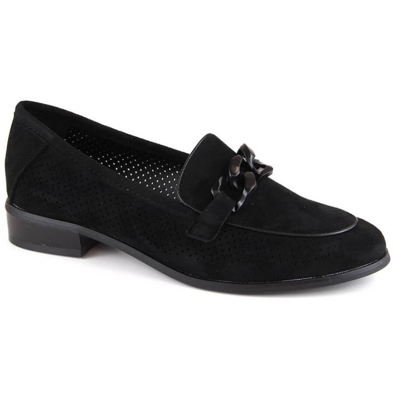 Potocki -Schuhe in WOL211A haben eine 3 -cm -High Heel, was sie bei alltäglichen Aktivitäten bequem macht, ohne einen eleganten Look aufzugeben. Universelle schwarze Farben lassen sie zu verschiedenen Stylisationen übereinstimmen - von lässigen Sets bis hin zu eleganteren Outfits.