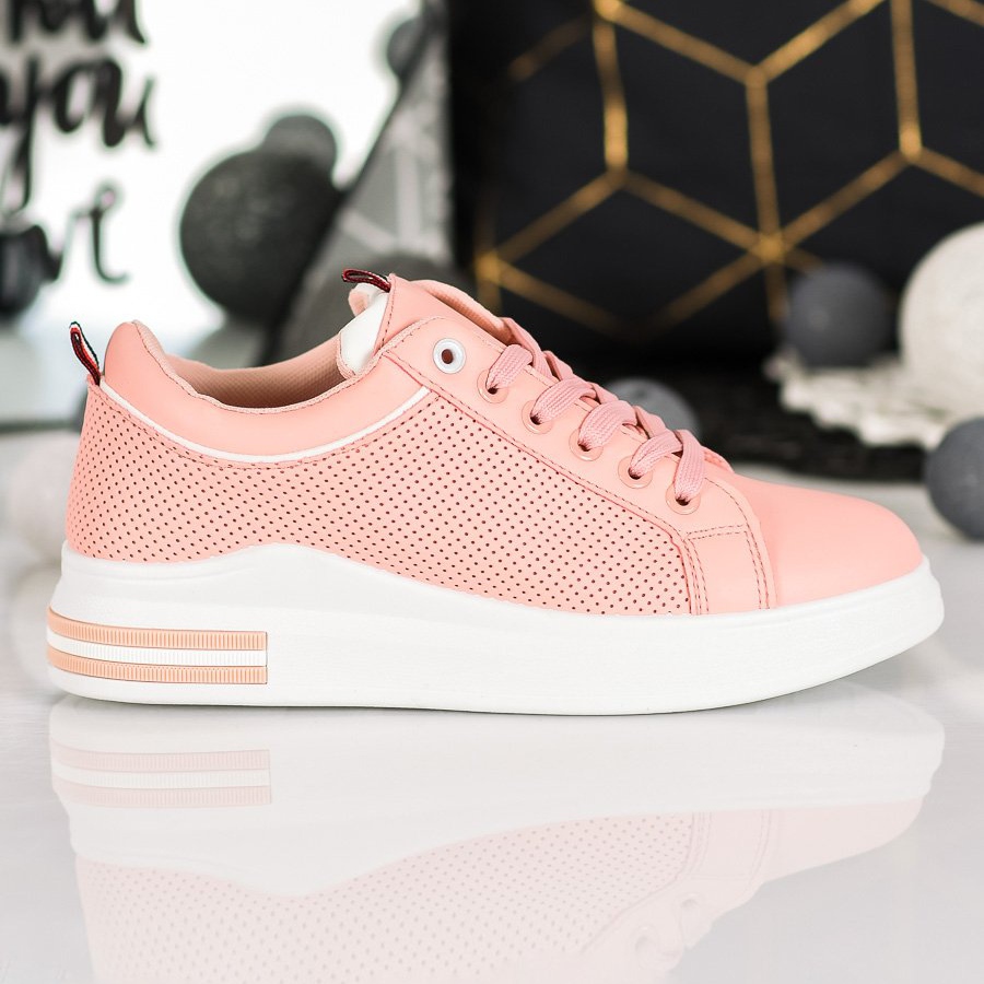 Entdecken Sie einzigartige puderfarbene Plateau-Sneaker der Marke SHELOVET, die perfekt zu den neuesten Trends bei Sportschuhen passen. Diese Damen-Sneaker sind eine ausgezeichnete Wahl für Frauen, die Komfort mit modischem Stil verbinden möchten. Das durchbrochene Obermaterial in einem dezenten Rosaton verleiht Eleganz und macht diese Schuhe zu einer attraktiven Ergänzung für jedes Sport-Styling.