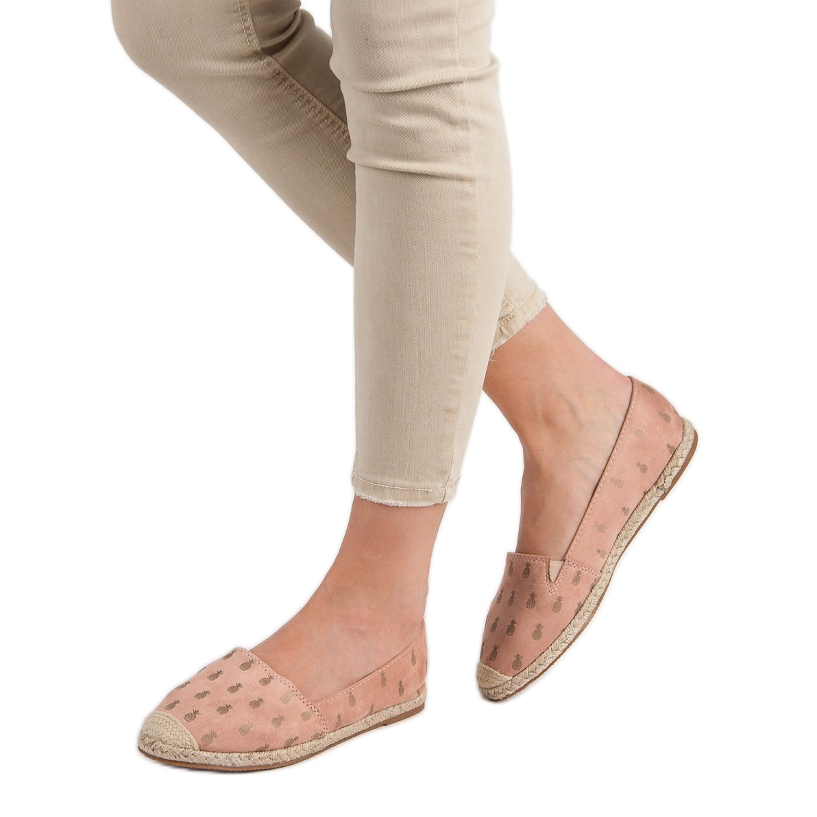 Durch den lässigen Stil passen Espadrilles perfekt zu einer Vielzahl von Stilen – vom Sommerkleid bis zur Jeans-Shorts. Ein mädchenhafter Akzent in Form eines originellen Ananasmusters verleiht ihnen einen einzigartigen Charakter und die rosa Farbe verleiht jedem Styling eine fröhliche Stimmung.
