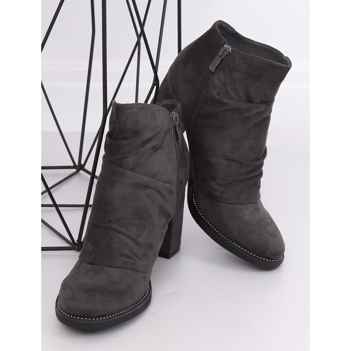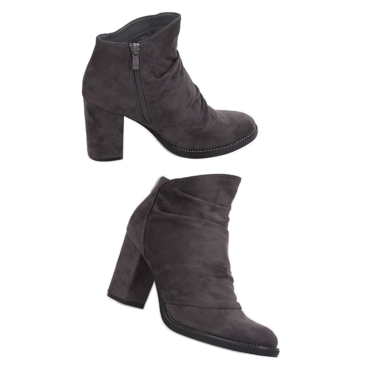 Entdecken Sie Eleganz und Komfort mit den hochhackigen Stiefeletten Puebla Grey in einem Grauton. Diese einzigartigen Damen-Stiefeletten, montiert auf einem stabilen 9 cm hohen Absatz, vereinen klassisches Design mit den neuesten Trends. Ihr charakteristisches Element ist das gerüschte Obermaterial, das ihnen einen modischen Look verleiht, und dezente Strasssteine im Zierbesatz verleihen ihnen einen einzigartigen Glanz.