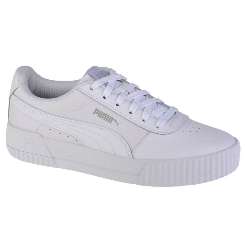 Wir präsentieren die Jugendschuhe Puma Carina L Jr 370677-19 in klassischem Weiß, die sich perfekt für den täglichen Gebrauch eignen. Diese niedrigen Schnürschuhe vereinen Stil und Komfort und sind somit die perfekte Wahl für aktive Mädchen.