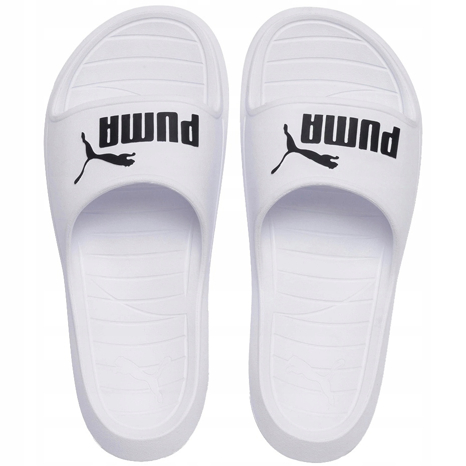 Ein leichter und universeller Satz der Marke Puma - Divecat V2 in klassischem Weiß. Das profilierte Design mit EVA -Schaum garantiert den Komfort des Tragens, und die äußere Sohle mit Rillen verbessert die Adhäsion der nassen Oberfläche. Das minimalistische Design mit dem kontrastierenden Logo lässt die Klappen sowohl am Strand als auch am Pool oder für das tägliche, kostenlose Outfit funktionieren.