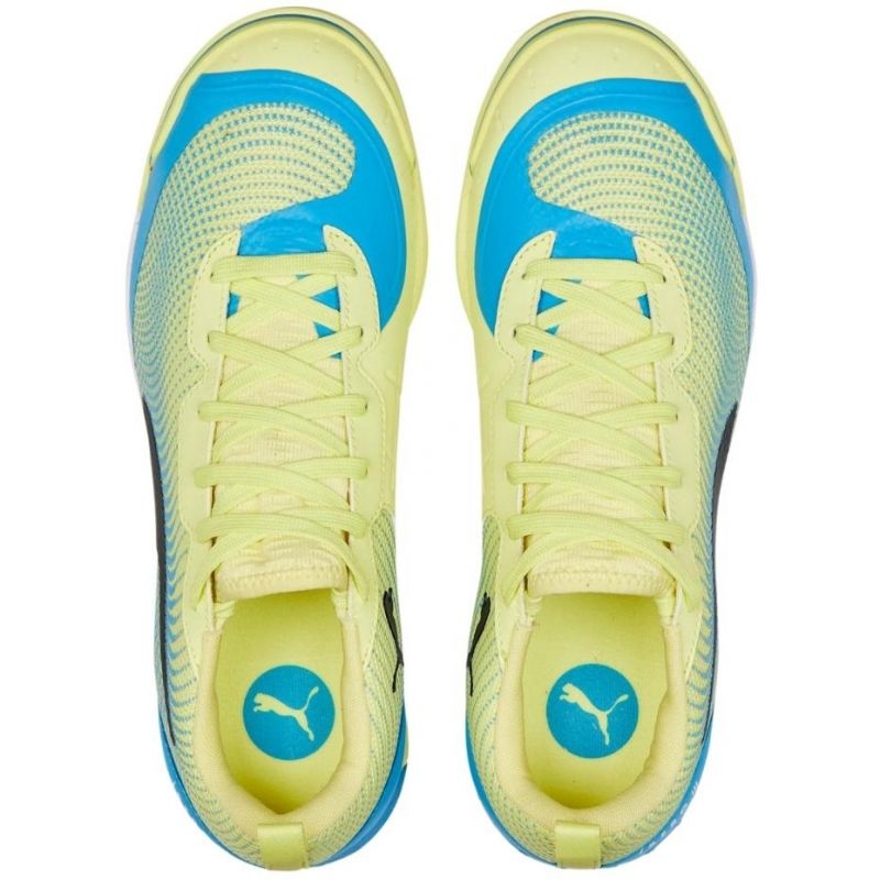 Puma Ibero III It 106891 01 Fußballschuhe - Blaue Hallen mit grünen Akzenten. Modell aus der Premiere Festest Pack Collection, die als komfortable Einführung in die Fußball -Ära der Geschwindigkeit ausgelegt ist - die perfekte Wahl für Training und Freizeit -Indoor -Spiele.