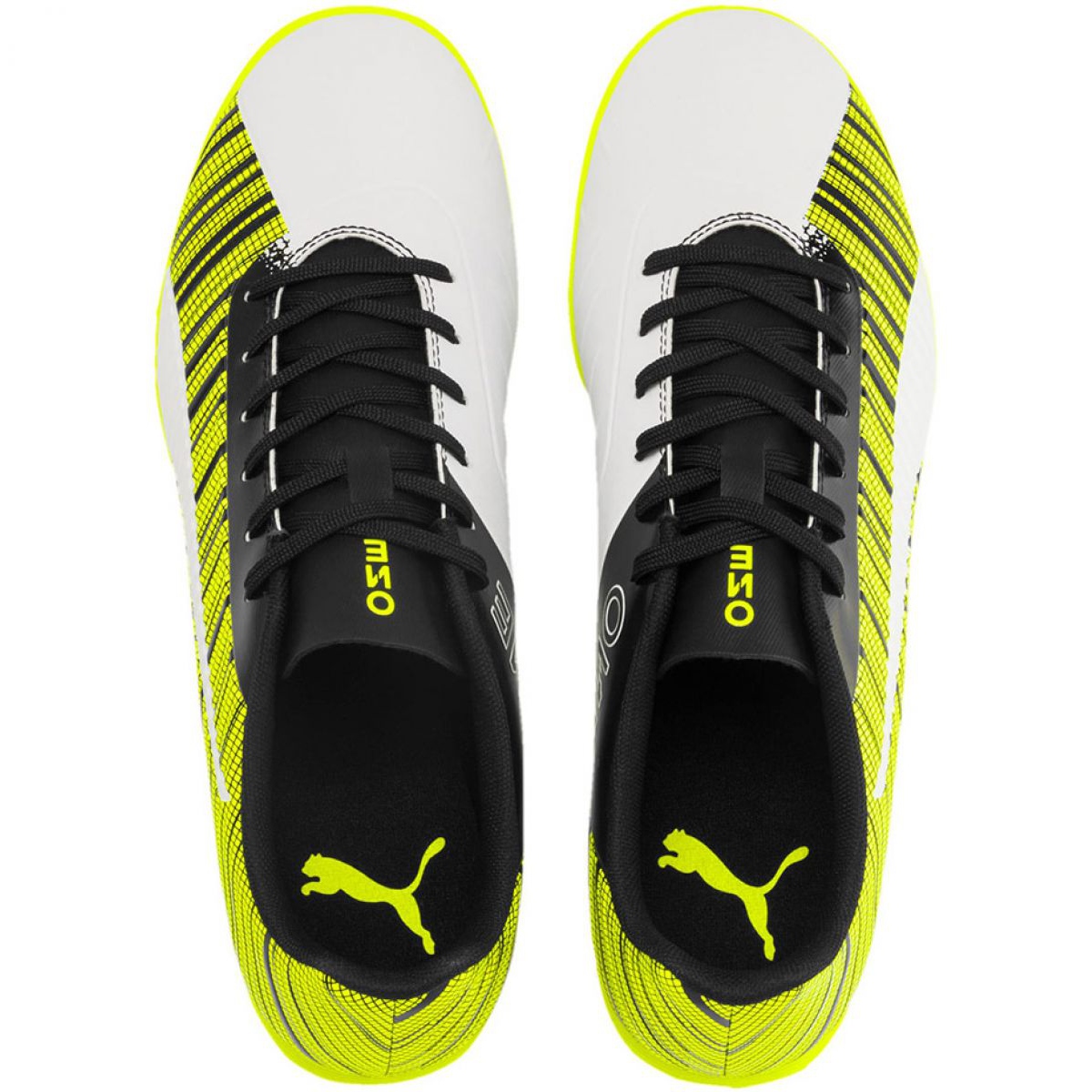 Puma One 5.4 IT in Gelb, Weiß und Schwarz ist ein auf Männer ausgerichtetes Modell, das sich nicht nur durch seine Funktionalität, sondern auch durch sein modernes Design auszeichnet. Perfekt für Amateure, die auf dem Spielfeld Wert auf Qualität und Stil legen. Der Schnürverschluss ermöglicht eine einfache Anpassung des Schuhs, was den Spielkomfort zusätzlich erhöht.