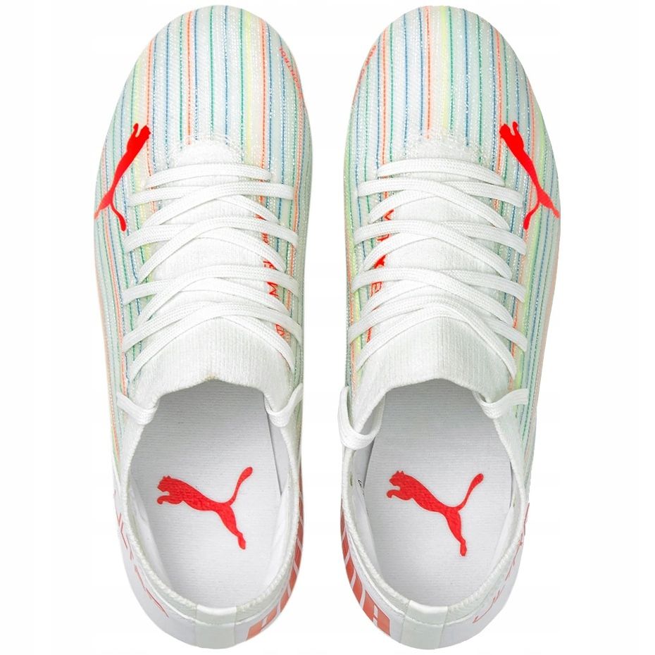 Puma Ultra 3.2 FG AG JR 106360 06 Fußballschuhe - schnell, leicht und präzise. Entwickelt für junge Spieler, die dank der Geschwindigkeit und der perfekten Kontrolle des Balls die Tonhöhe dominieren wollen. Das Modell der Spectra Pack -Kollektion kombiniert modernes Design mit fortschrittlichen technischen Lösungen, die eine gewisse Beschleunigung und präzise Anwendung erleichtern.