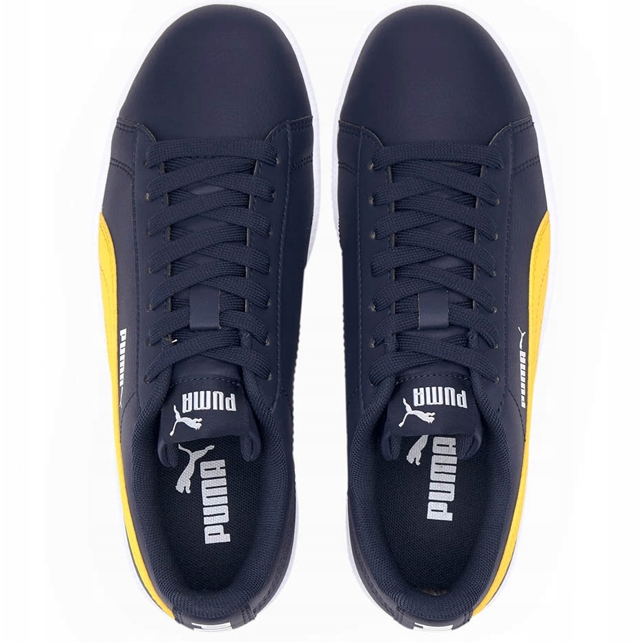 Klassische und komfortable Stadtschuhe der Marke Puma, die für den täglichen Gebrauch von aktiven Kindern entwickelt wurde. Ein ökologisches Leder -Obermaterial in einer dunkelblauen Farbe mit gelben Akzenten, eine haltbare Gummi -Sohle und ein textiles Interieur sorgt täglich Komfort und gute Polsterung.