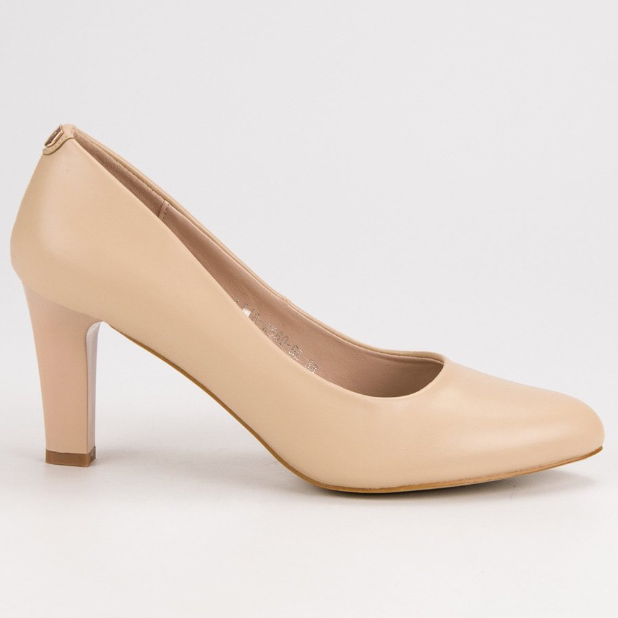 Die von Vinceza angebotenen braunen Pumps haben eine runde Spitze und eine hohe, stabile Sohle in Form eines 7,5 cm hohen Absatzes, was sie sowohl elegant als auch funktional macht. Dank des Slip-on-Verschlusses gelingt das An- und Ausziehen der Schuhe schnell und bequem.