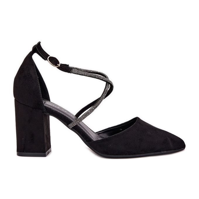 Pumpen mit spitzen Zehen und dekorierten Streifen auf dem Post sind die perfekte Wahl für moderne Frauen, die Eleganz und Stil schätzen. Sie bestehen aus hochwertigem Öko -Wildleder und sehen extrem beeindruckend aus, und ihre klassische, schwarze Farbe macht sie zu jeder Gelegenheit.