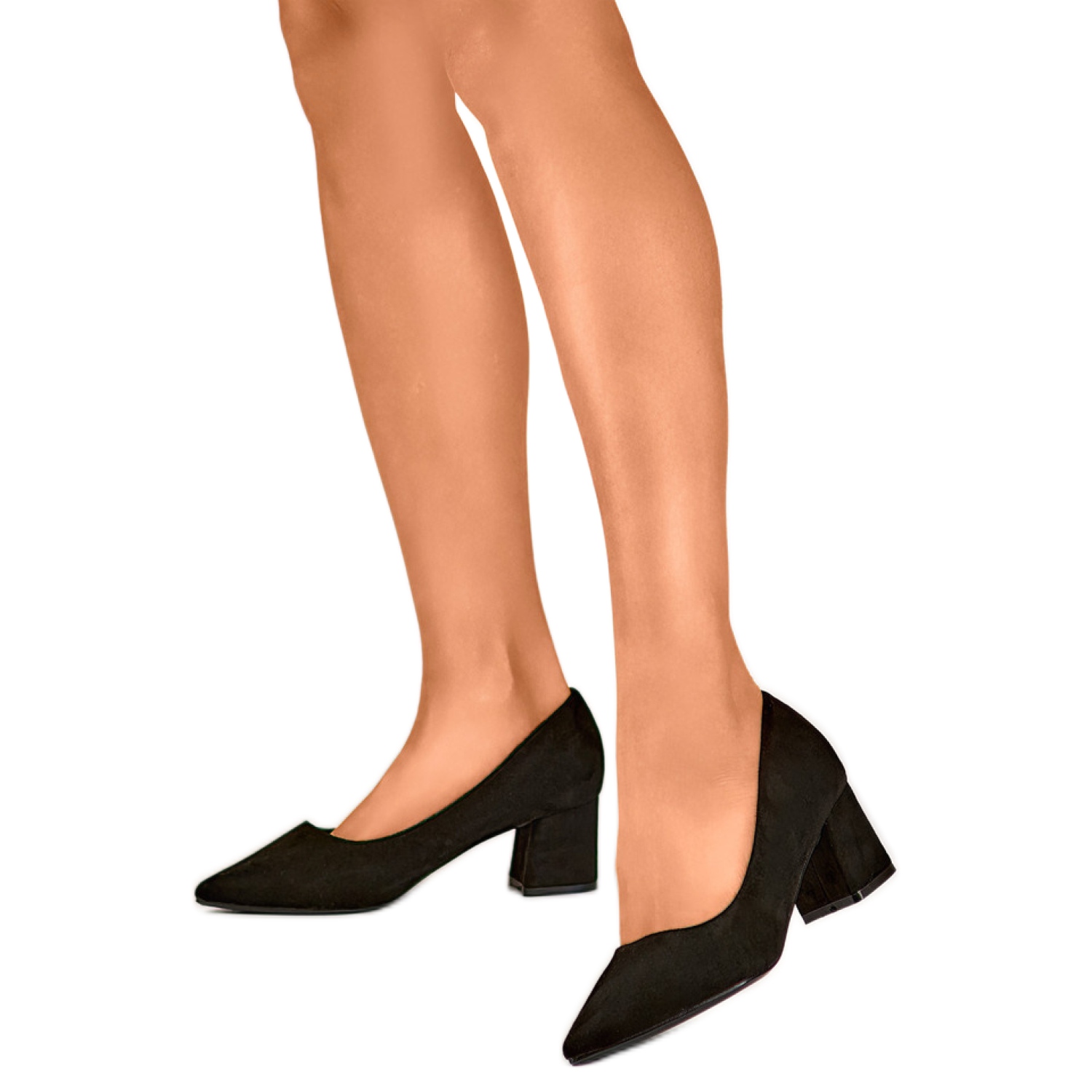 Pumps Model KJ-10B Black ist die perfekte Kombination aus Eleganz und Bequemlichkeit, die sicherlich jede Frau befriedigen wird. Diese schwarzen Pumpen bestehen aus ökologischem Wildleder und sind nicht nur stilvoll, sondern auch umweltfreundlich. Dank des zeitlosen Designs passen sie perfekt zu verschiedenen Stylisationen - sowohl alltäglich als auch formeller.