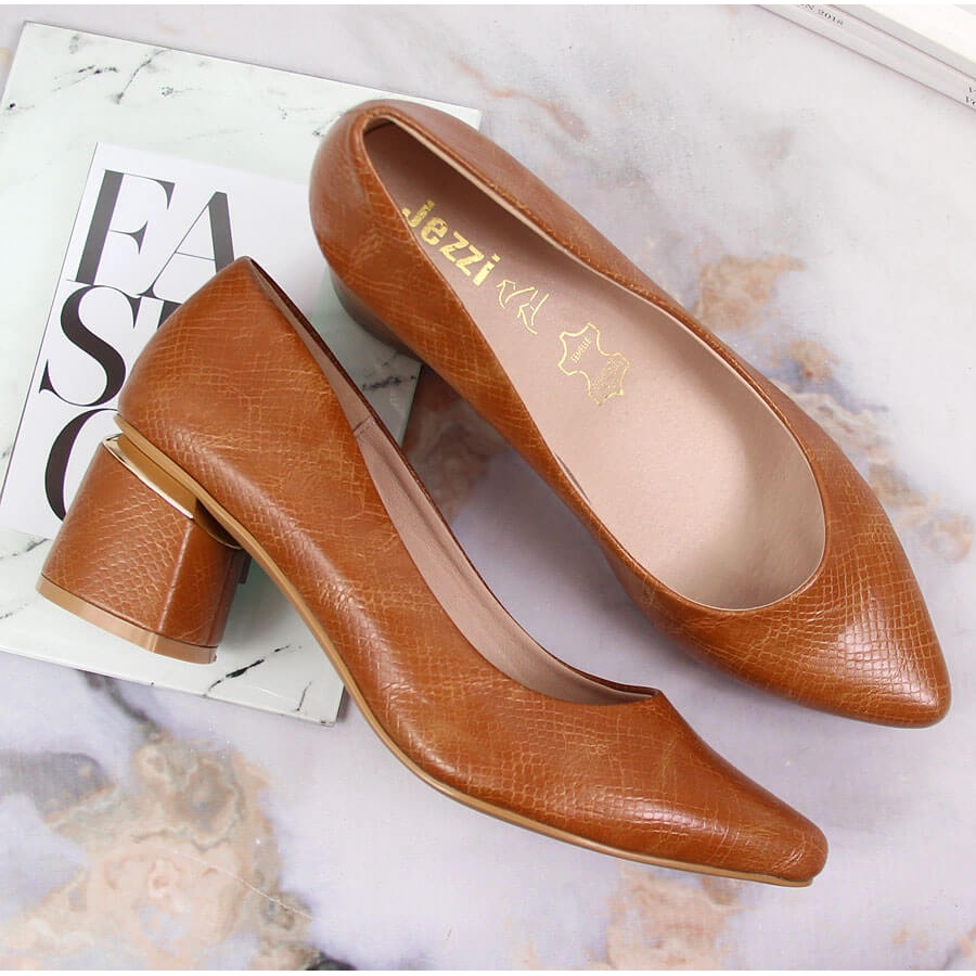 Wir präsentieren elegante Pumps mit dekorativem braunem Absatz der renommierten Marke Jezzi, die Stil und Tragekomfort perfekt vereinen. Diese einzigartigen Schuhe wurden für Frauen entwickelt, die in jeder Situation schick aussehen und gleichzeitig bequem zu tragen sein möchten.
