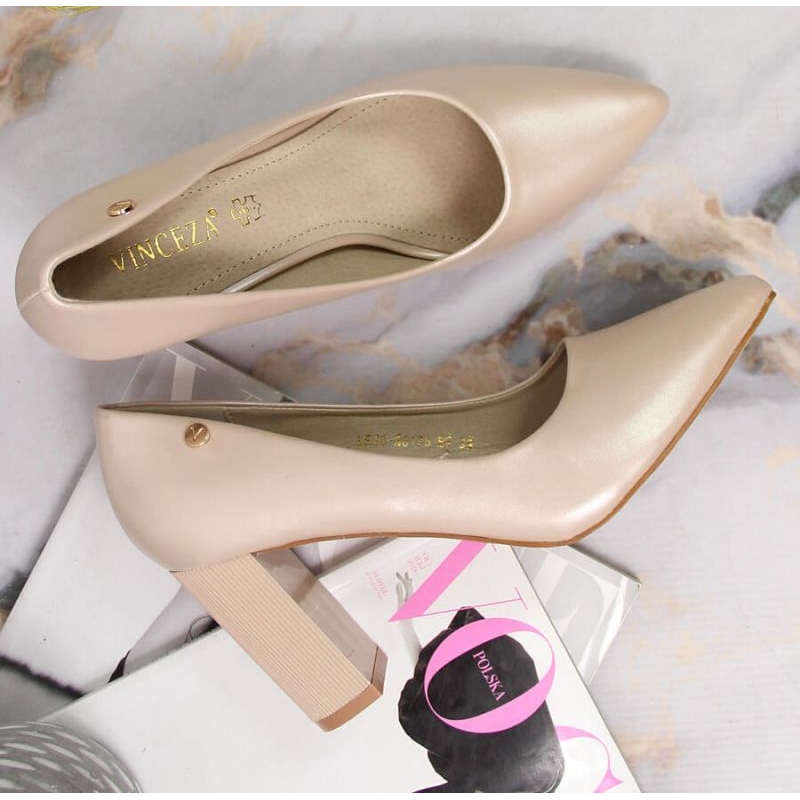 Elegante und universelle Vinceza -Pumpen, die sowohl täglich als auch formalere Anlässe arbeiten. Klassische, beige Farben und eine schlanke Nase verleihen einen weiblichen Charakter, und ein stabiler 9 -cm -Pfosten bietet den ganzen Tag aus Komfort.