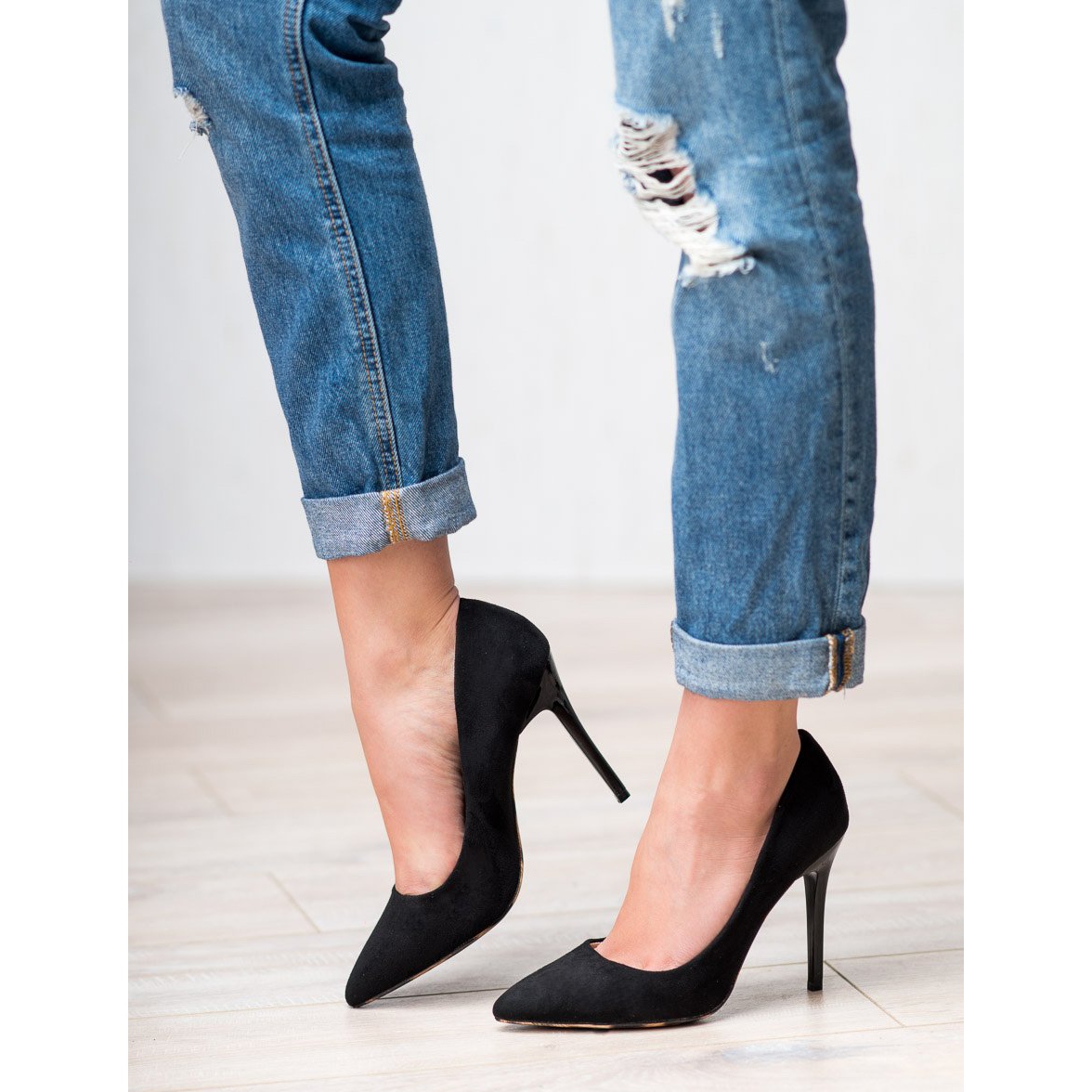 Pumps mit hohen Absätzen von Erynn sind die Quintessenz von Eleganz und Weiblichkeit. Diese klassischen schwarzen Schuhe bestehen aus hochwertigem Faux-Wildleder mit Wildlederimitat und sind die perfekte Wahl für besondere Anlässe. Die schmal zulaufende Spitze und die profilierte Sohle passen sich perfekt der Fußform an und sorgen für angenehmen Tragekomfort.