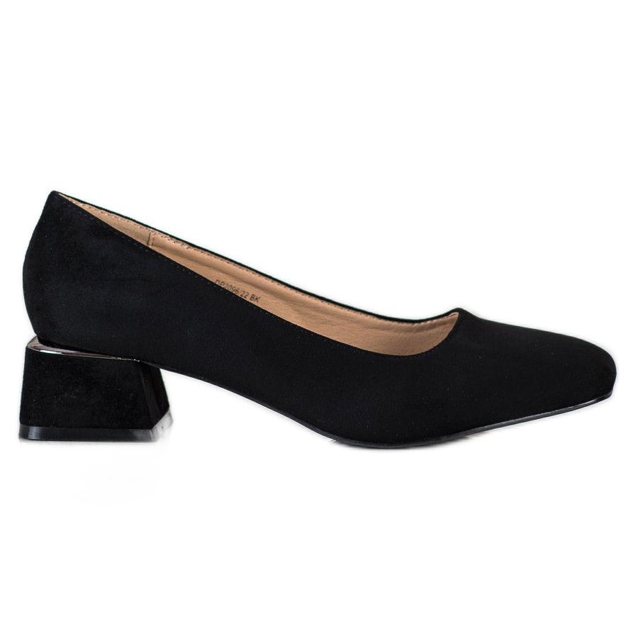 Filippo-Pumps mit breitem Absatz sind die perfekte Wahl für jede moderne Frau, die die Kombination aus Eleganz und Komfort schätzt. Diese stilvollen Schuhe aus schwarzem ökologischem Wildleder eignen sich perfekt für den täglichen Gebrauch und für verschiedene Veranstaltungen. Durch ihr klassisches und elegantes Design passen sie perfekt zu verschiedenen Stilrichtungen.