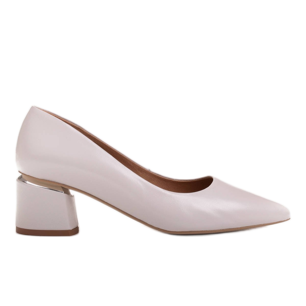 Die Pumps haben eine spitze Spitze und einen stabilen 5-cm-Blockabsatz, der den ganzen Tag über ein angenehmes Tragegefühl gewährleistet. Die Innenseite der Schuhe ist mit Naturleder verarbeitet, was ihre Haltbarkeit und ihren Komfort zusätzlich erhöht. Die Sohle aus hochwertigem Kunststoff garantiert ausreichend Halt und wirkt sich positiv auf den Komfort bei jedem Schritt aus.