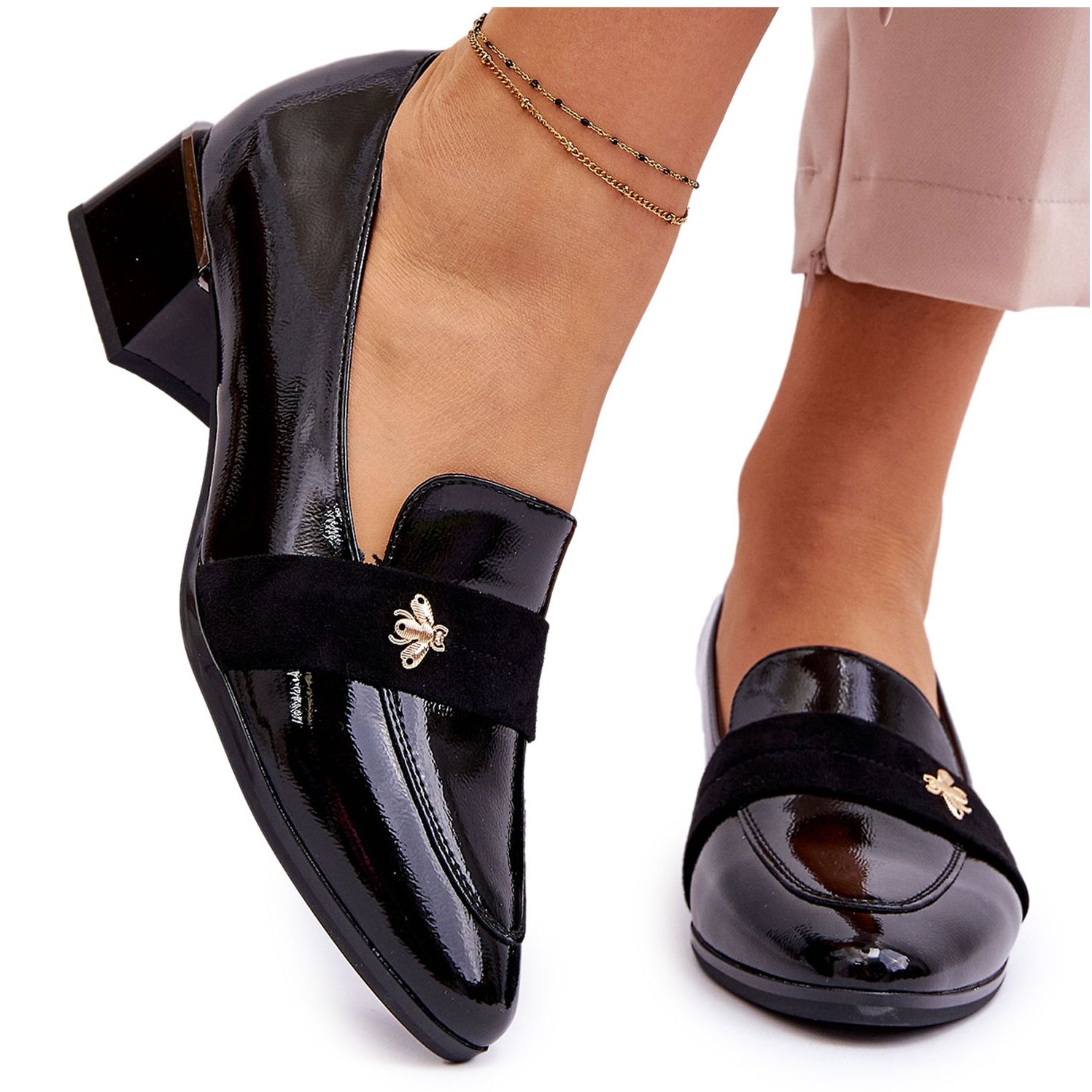 Vinceza Vinceza Pumps aus schwarzem Lackleder mit niedrigem Absatz und Verzierung Doria
