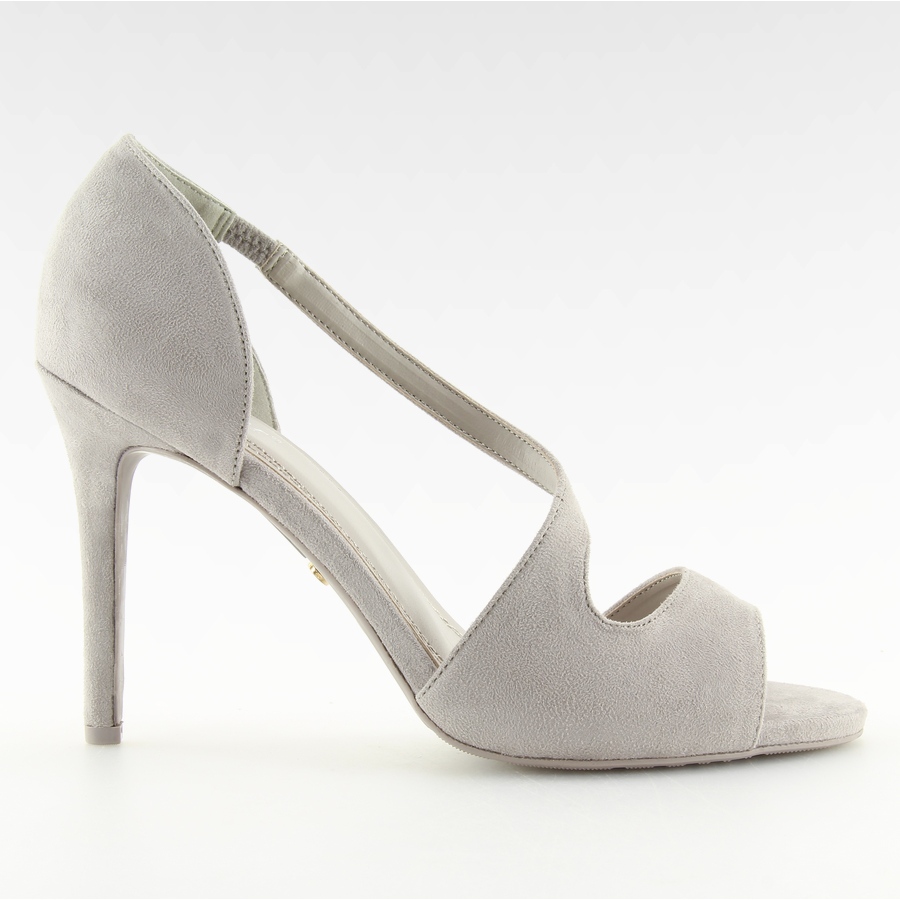 Offene, asymmetrische, graue C90-Pumps sind die perfekte Wahl für jede moderne Frau, die Komfort mit Eleganz verbinden möchte. Aus hochwertigem ökologischem Wildleder gefertigt, betonen diese Sandalen die feminine Silhouette und verleihen Eleganz.