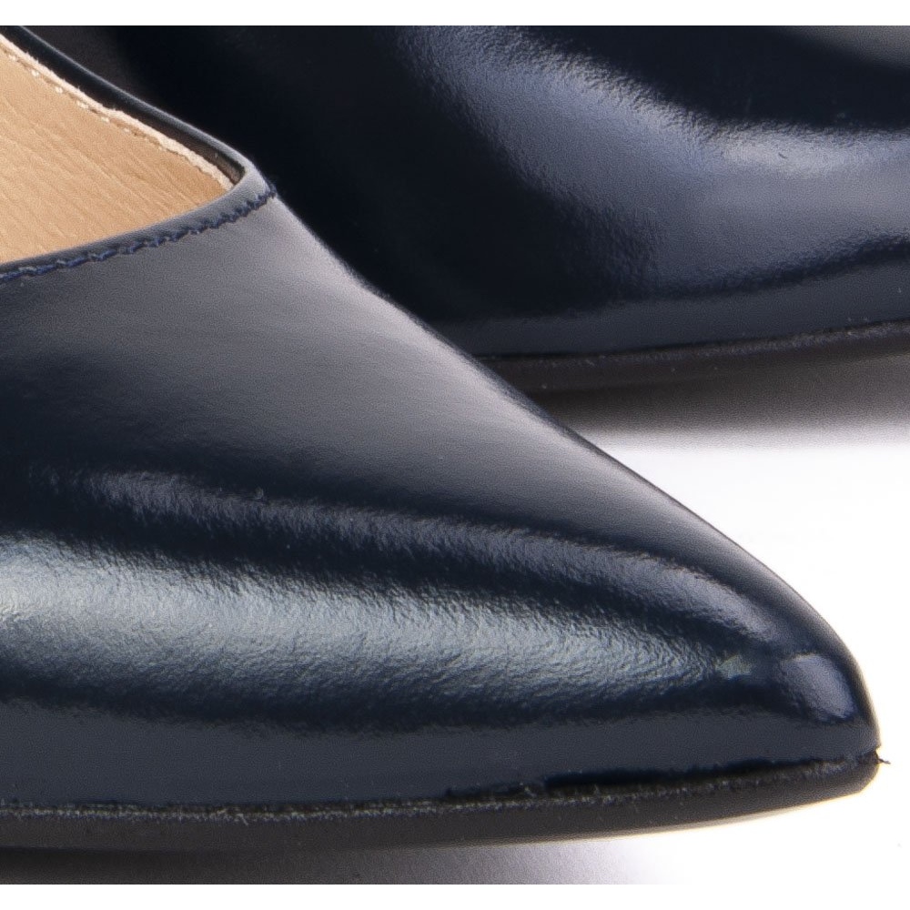 Mit einer Absatzhöhe von 8,5 cm verleihen diese Absätze Klasse, verlängern die Silhouette und bieten gleichzeitig Stabilität beim Gehen. Die spitze Spitze verleiht ihnen ein schlankes Aussehen und die marineblaue Farbe ermöglicht eine einfache Kombination mit einer Vielzahl von Kleidungsstücken. Auch die Innenseite der Schuhe ist mit Naturleder ausgekleidet, was für Komfort und Haltbarkeit sorgt.