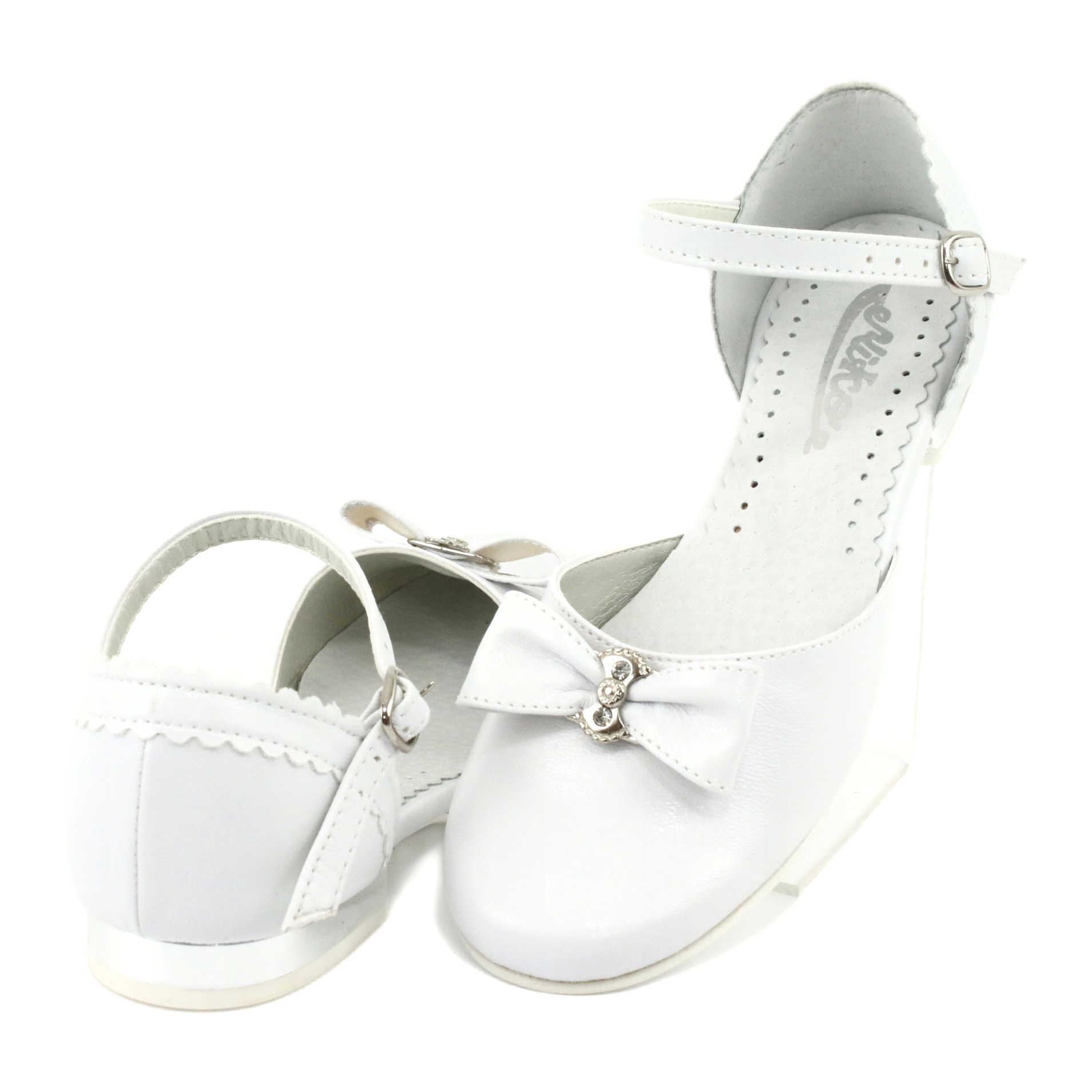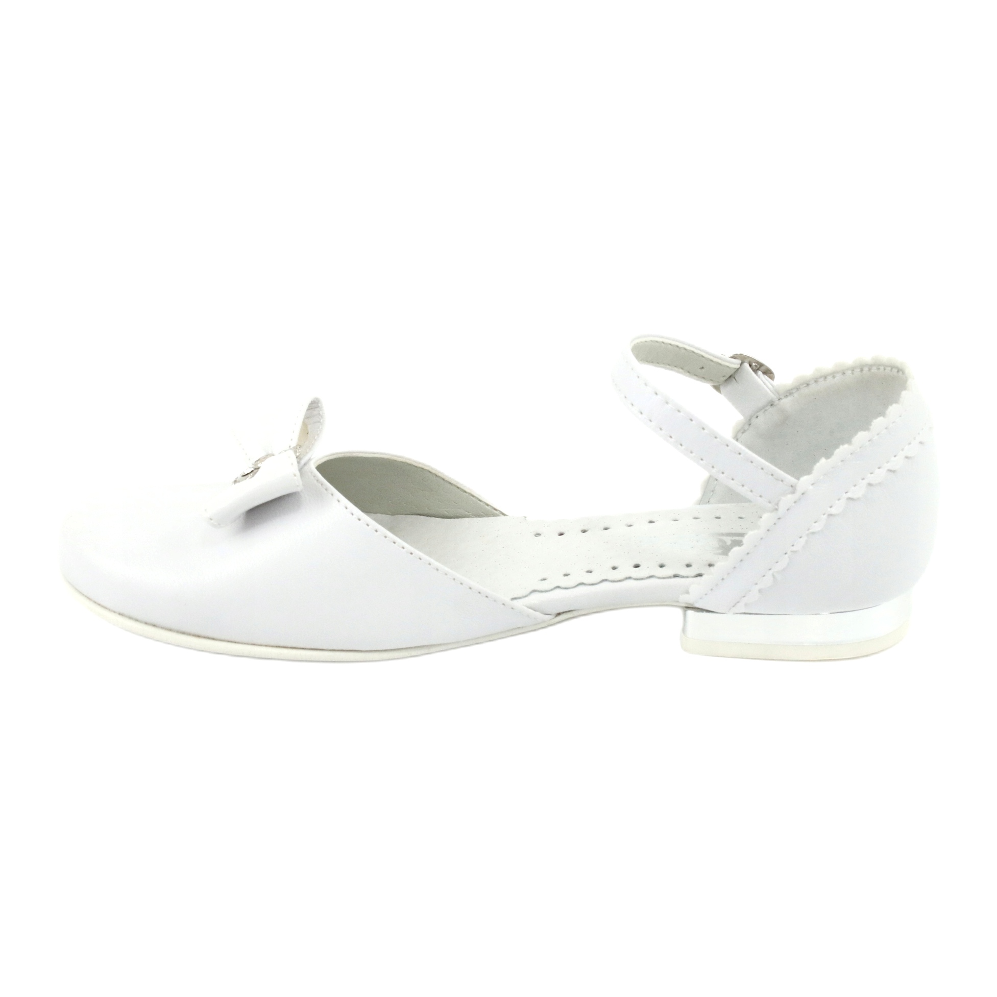 Wir präsentieren wunderschöne Kommunionpumps, die sicherlich jedes kleine Mädchen begeistern werden. Das Modell Miko 671 in Weiß ist das perfekte Schuhwerk für diesen äußerst wichtigen Tag. Die von einer renommierten polnischen Marke hergestellten Pumps vereinen Eleganz mit Komfort, was sie zu einer hervorragenden Wahl für Erstkommunionfeiern und andere besondere Anlässe macht.