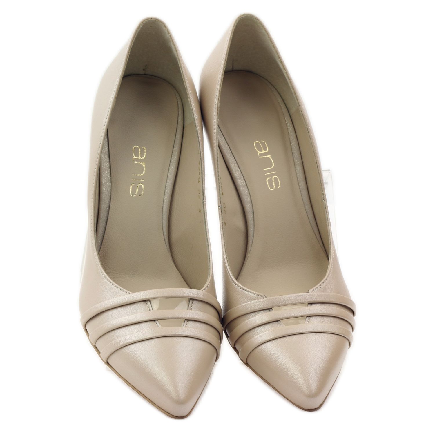 Beigefarbene Perlenpumps Anis 4570 sind ein einzigartiges Modell, das Eleganz und Komfort vereint. Aus sorgfältig ausgewähltem Naturleder gefertigt, fallen sie mit einem interessanten Obermaterialdesign und einem dezent perlmuttfarbenen Beigeton auf.