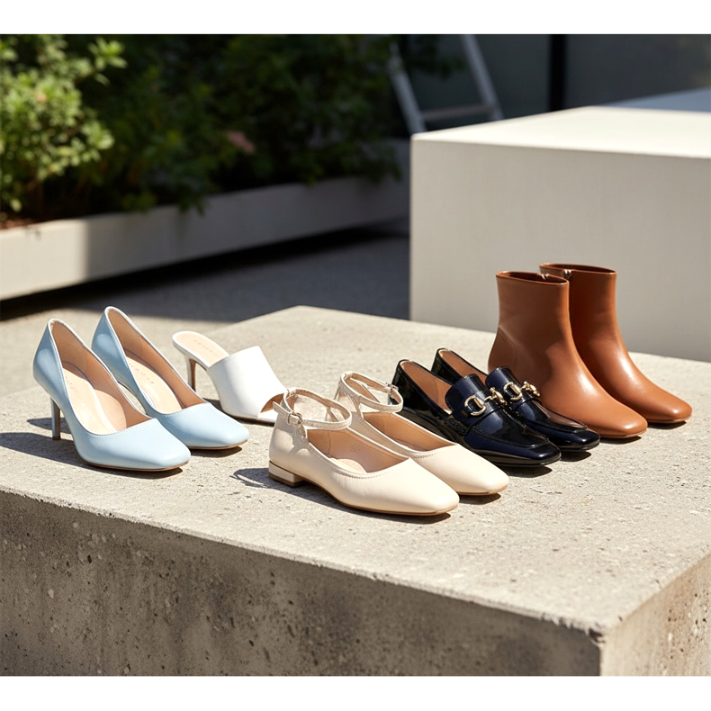 Die quadratische Zehenpartie ist im Jahr 2026 in praktisch jeder Kategorie von Damenschuhen präsent. Am häufigsten ist sie zu finden in: