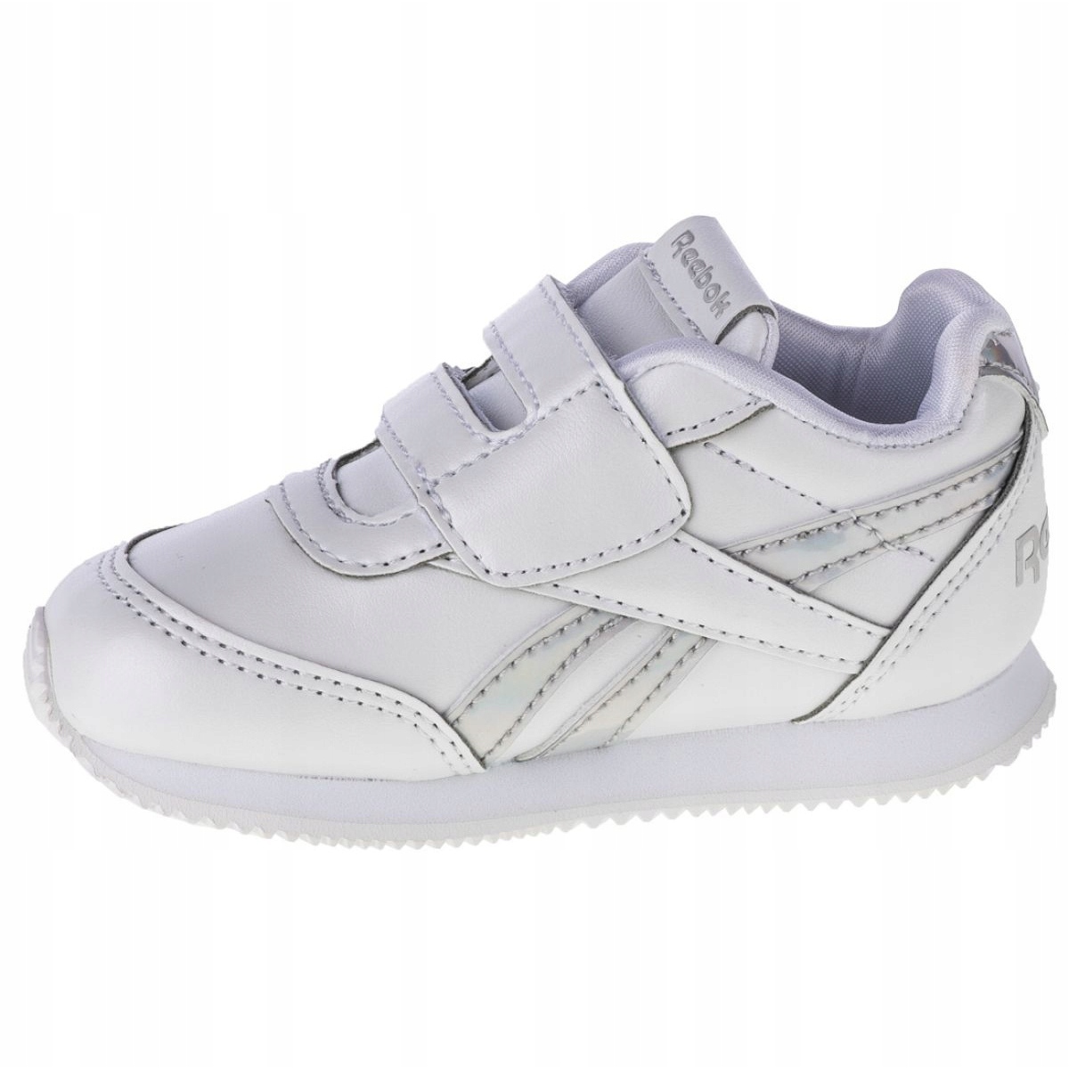Die Schuhe Reebok Royal Classic Jogger 2.0 K DV9022 sind stilvolle und bequeme Sportschuhe für Kinder. Diese niedrigen weißen Sneaker vereinen modernes Design mit hochwertiger Verarbeitung. Das Obermaterial aus synthetischem Material und ökologischem Leder sorgt für Langlebigkeit und Pflegeleichtigkeit, was bei Kinderschuhen äußerst wichtig ist.