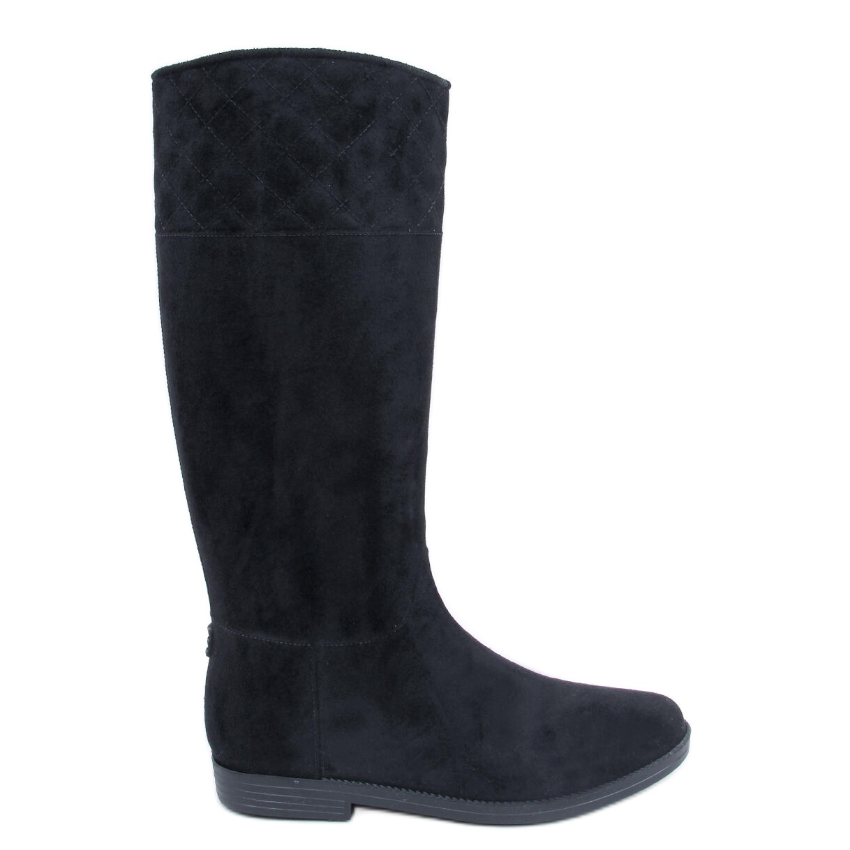 Klassische schwarze, schwarze schwarze Offiziere sind eine Kombination aus Praktikabilität und modischem Schnitt. Aus Gummi, bedeckt mit ökologischem Wildleder mit Oberflächen, sind wasserdicht, angenehm Sie haben ein zeitloses, glattes Design ohne unnötige Dekorationen, die mit einer runden Nase und einer flachen Ferse (ca. 2 cm) rutschen. Sie greifen zum Knie, was zusätzlichen Schutz gegen Feuchtigkeit bietet.