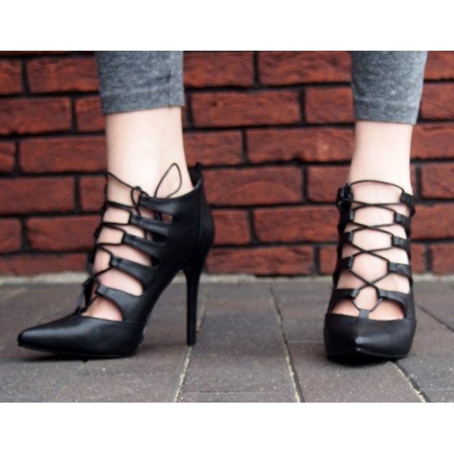 Details: Reich verzierte hohe Sandalen 11033-1 schwarz