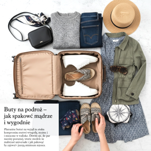 Schuhe „nur für den Fall“ mitnehmen. High Heels für den Strandurlaub? Elegante Stiefel zum Trekking? Wenn die Wahrscheinlichkeit einer Verwendung gering ist, lassen Sie es zu Hause. Jedes unnötige Paar kostet ein Kilogramm mehr zu tragen.