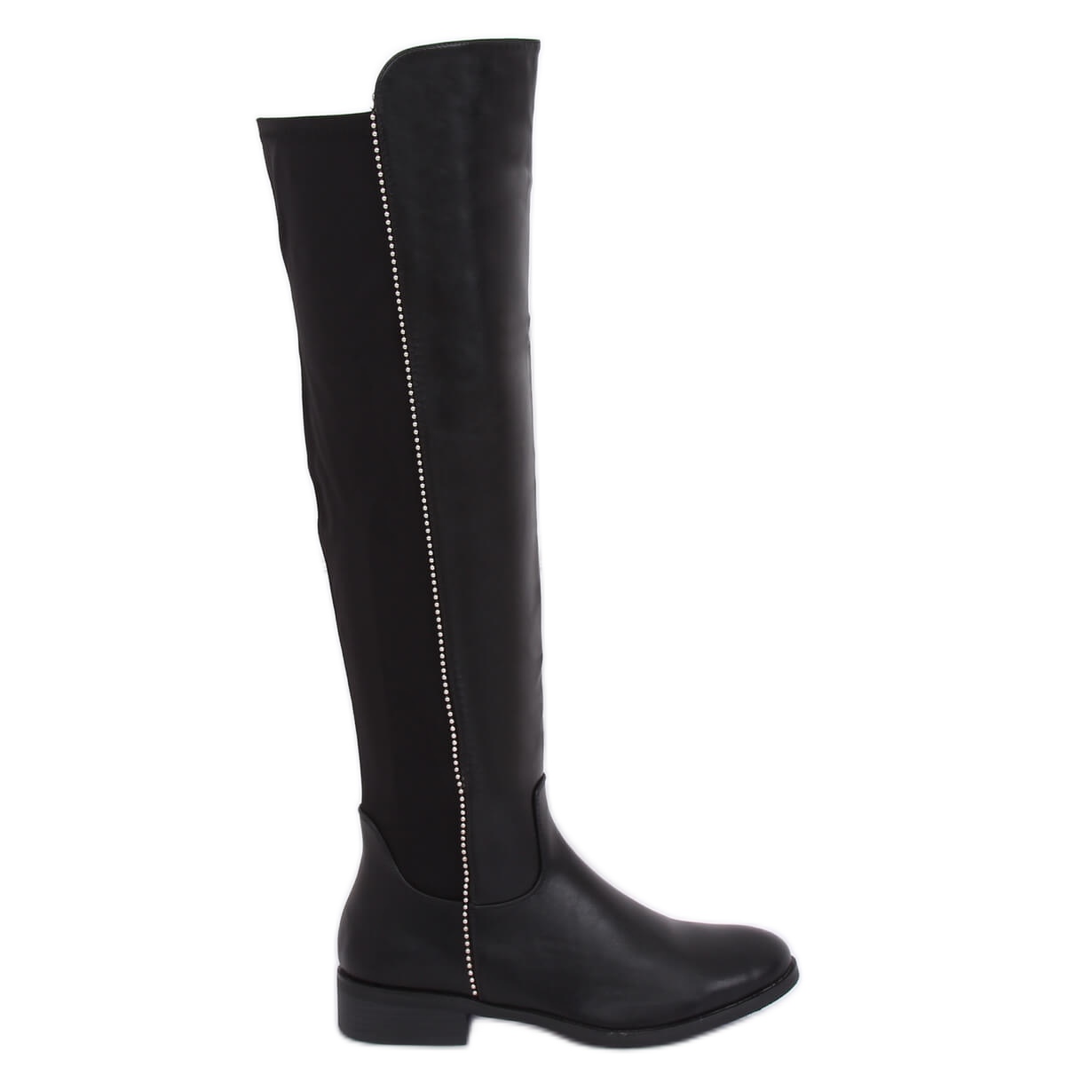 Wir präsentieren schwarze Stiefel mit flexiblem Obermaterial, Modell 17005A-128 Black – perfekt für jede moderne Frau, die Komfort mit Eleganz verbinden möchte. Diese flachen Damenstiefel zeichnen sich durch eine einzigartige elastische Rückseite aus, die für eine perfekte Passform an der Wade sorgt, sodass Sie den ganzen Tag über Tragekomfort genießen können.