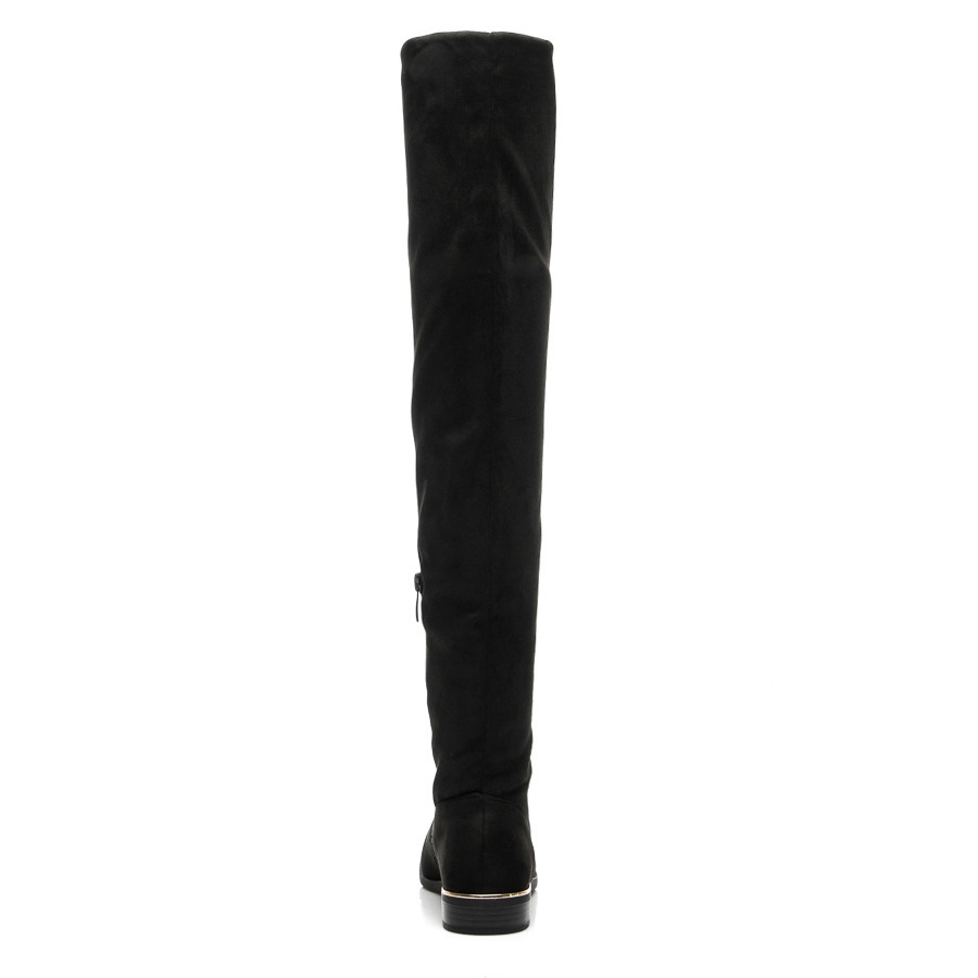 Investieren Sie in Eleganz und Komfort mit den Damenstiefeln von Super Me in klassischem Schwarz. Diese einzigartigen Schuhe aus hochwertigem Faux-Wildleder mit Wildleder-Finish sind eine perfekte Lösung für kältere Tage. Oberhalb des Knies wirkende Oberteile verleihen Eleganz und betonen die Beine, und ihr klassischer Schnitt passt zu vielen Modestilen.