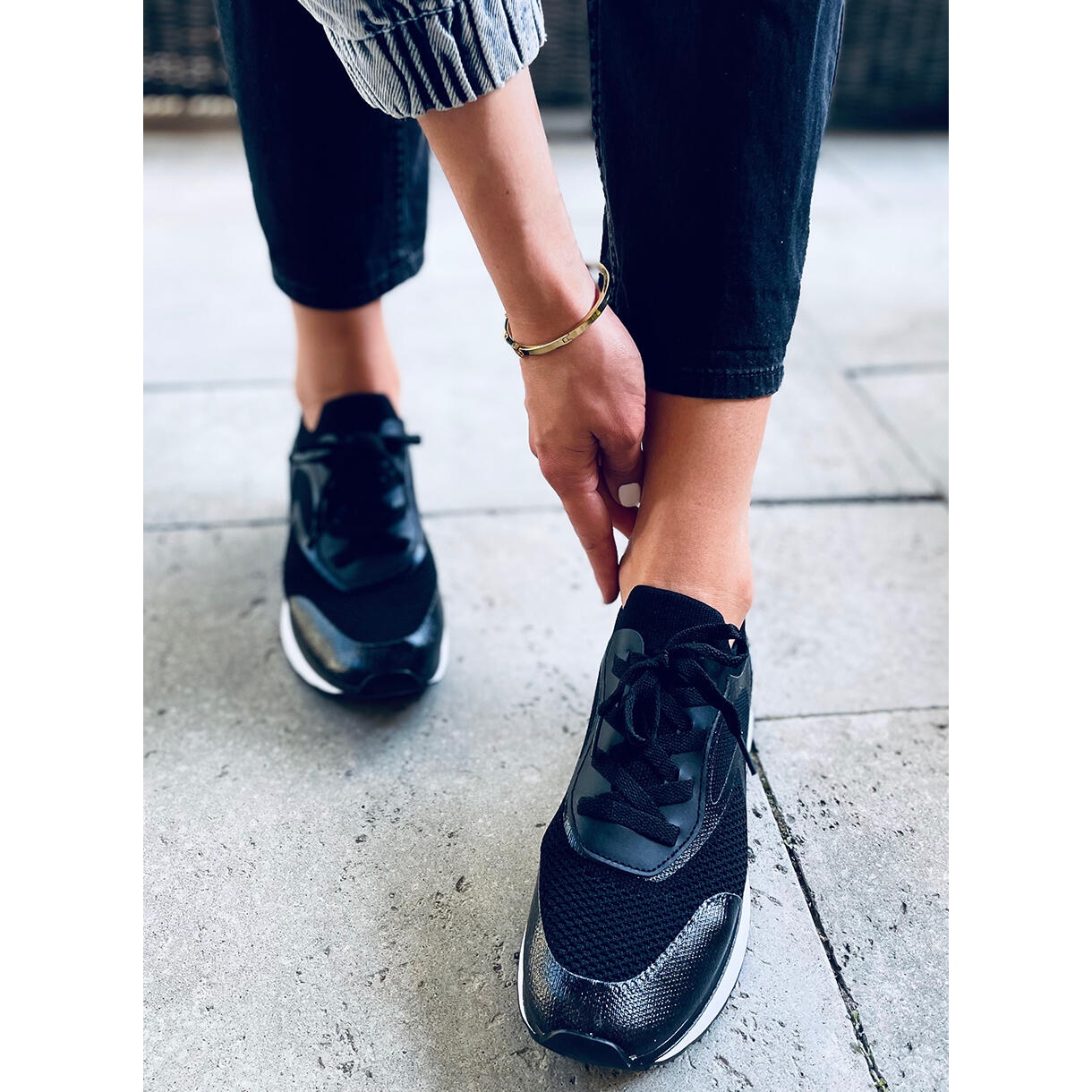 Die Sock-Sneaker von Remy Black sind die ideale Wahl für Frauen, die sowohl Wert auf Komfort als auch auf ein modisches Aussehen legen. Diese schwarzen Sportschuhe begeistern durch ihr modernes Design und ihre Funktionalität. Sie bestehen aus hochwertigem, sockenähnlichem Stoff, passen sich perfekt dem Fuß an und sorgen den ganzen Tag über für Tragekomfort.