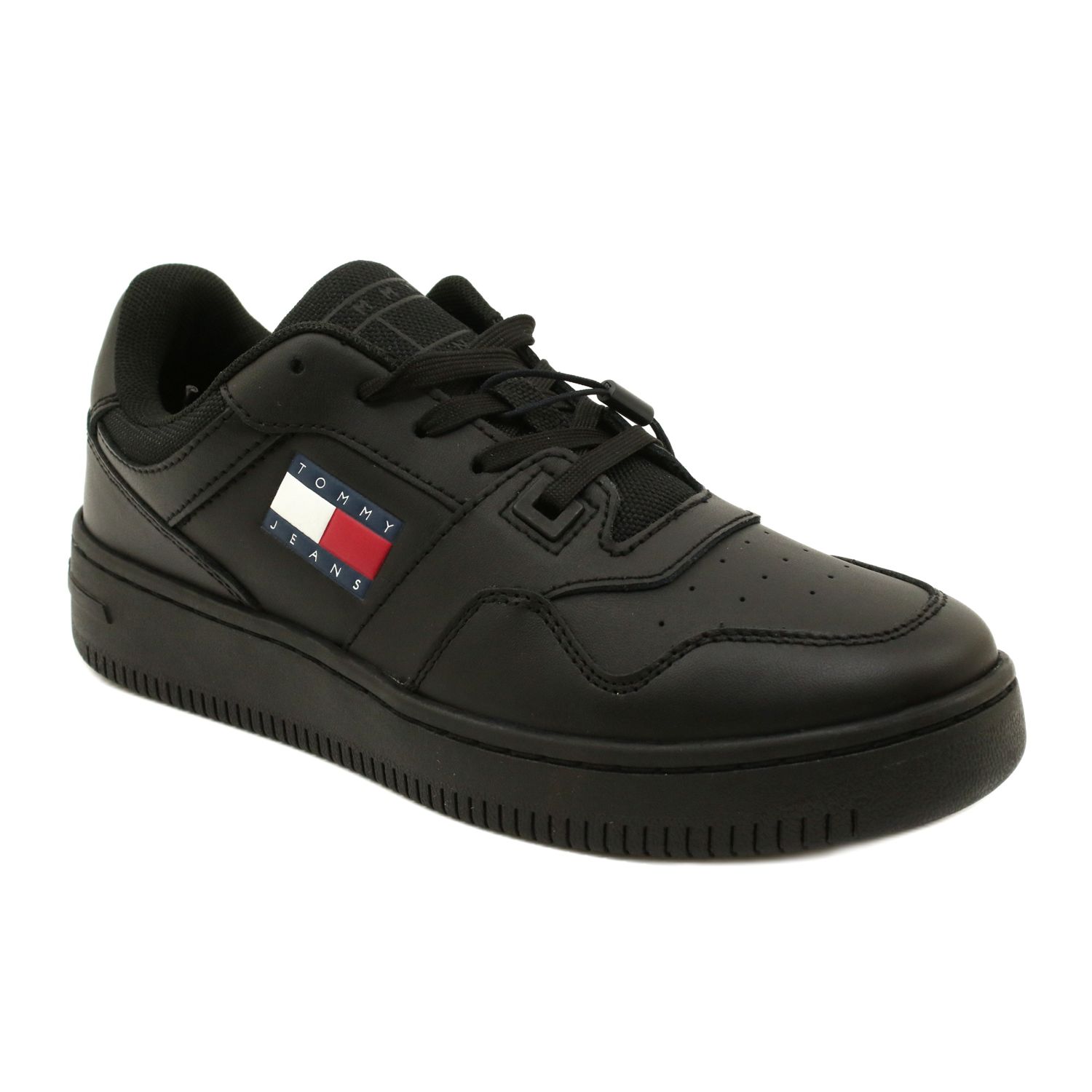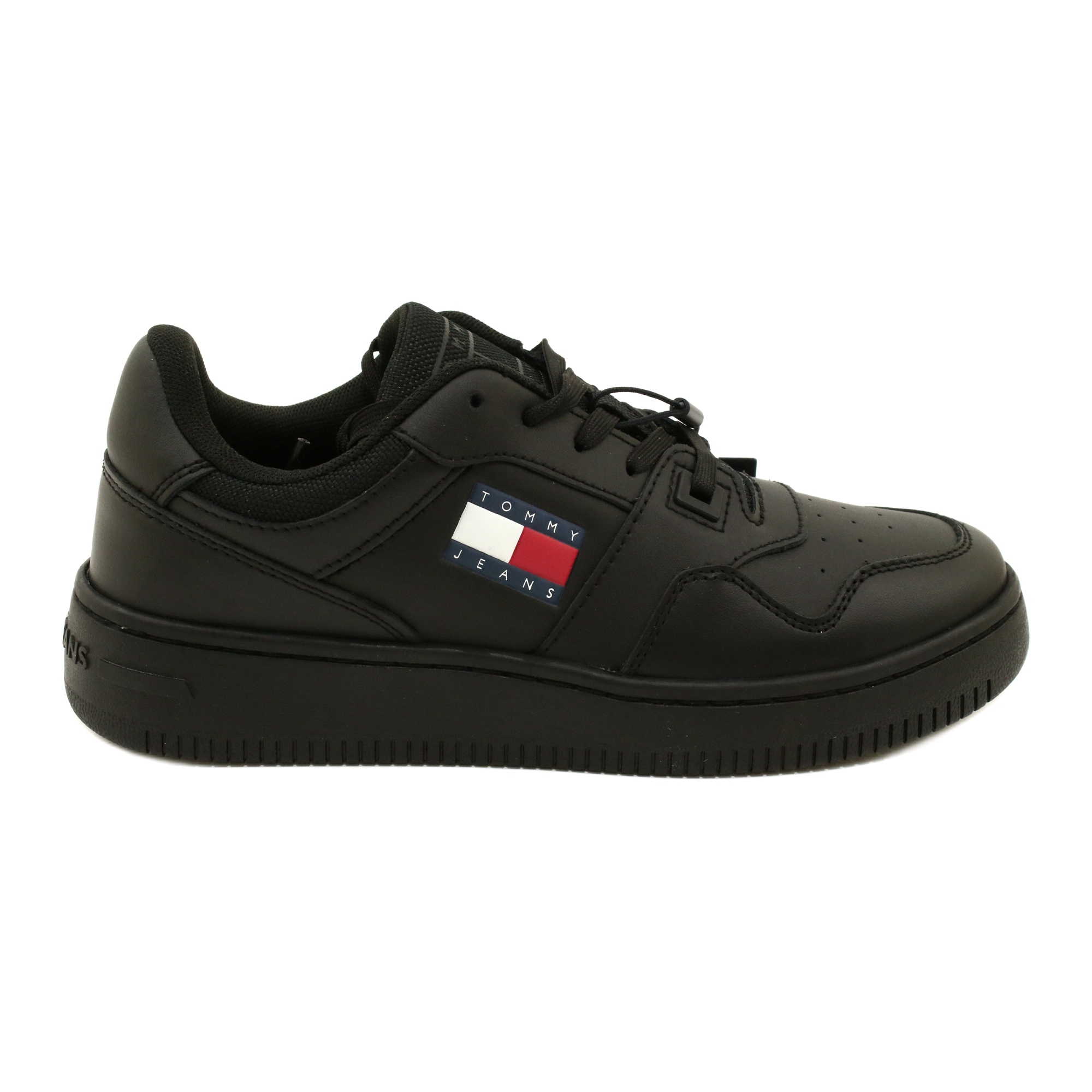 Retro -Korb -Ess -Sportschuhe von Tommy Hilfiger sind ein ideales Angebot für Frauen, die eine Kombination aus Stil und Komfort bei alltäglichen Aktivitäten schätzen. Das Modell in einer klassischen schwarzen Farbe passt perfekt zu verschiedenen Stilisierungen, was es zu einem universellen Element der Kleidung wird.