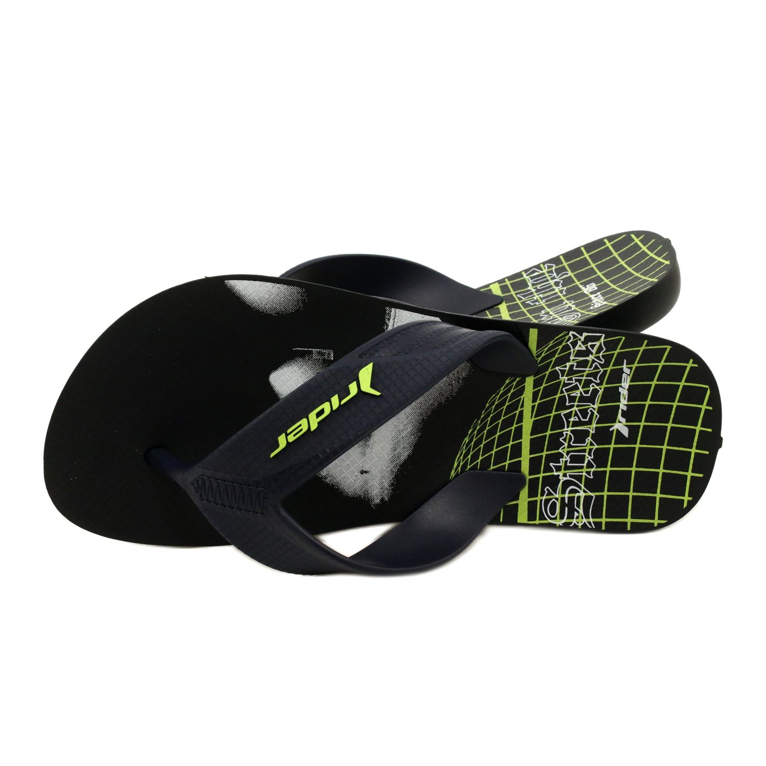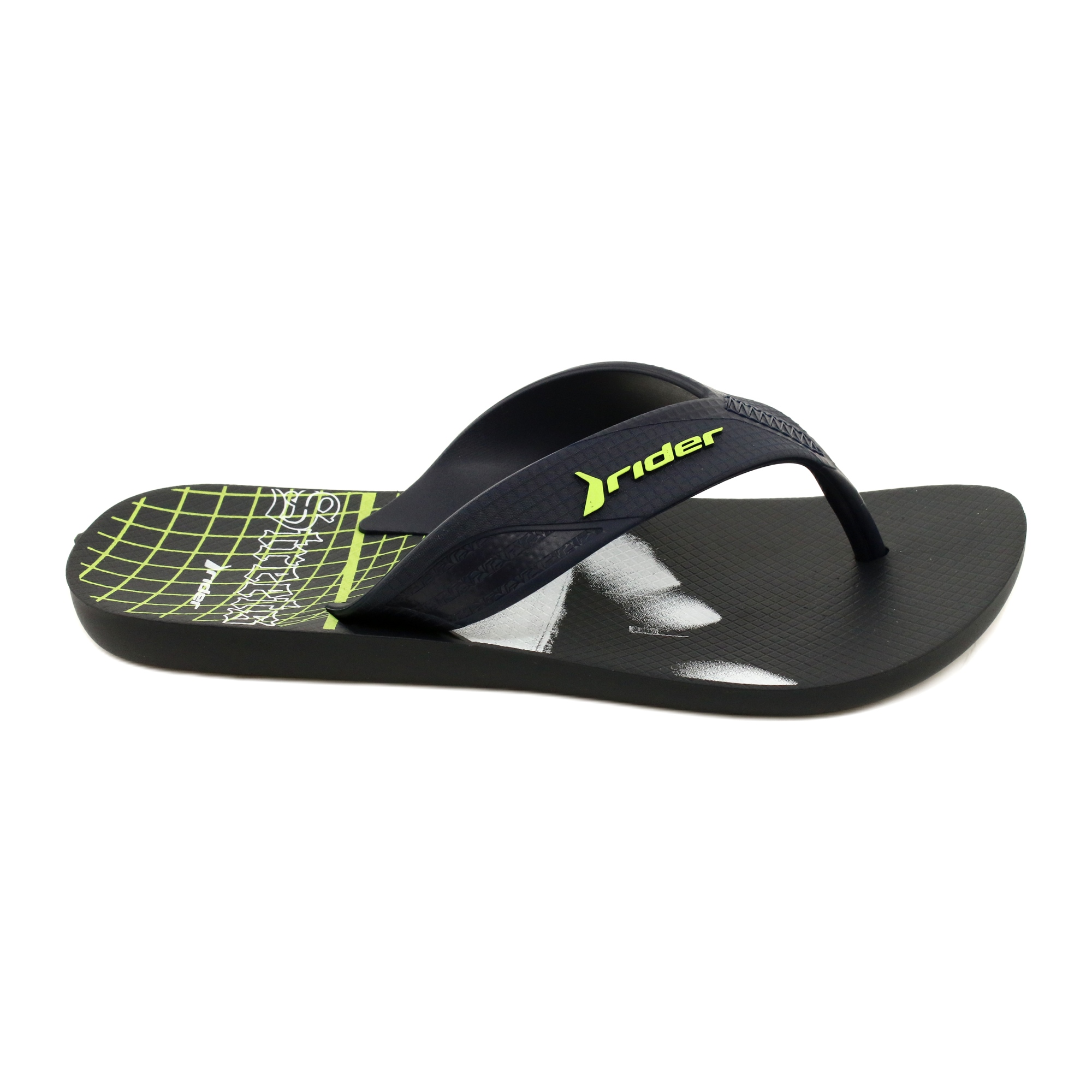 Herren zehenstegsandalen Rider 11804 AE205 - Schwarz / Marineblau mit grünem Logo