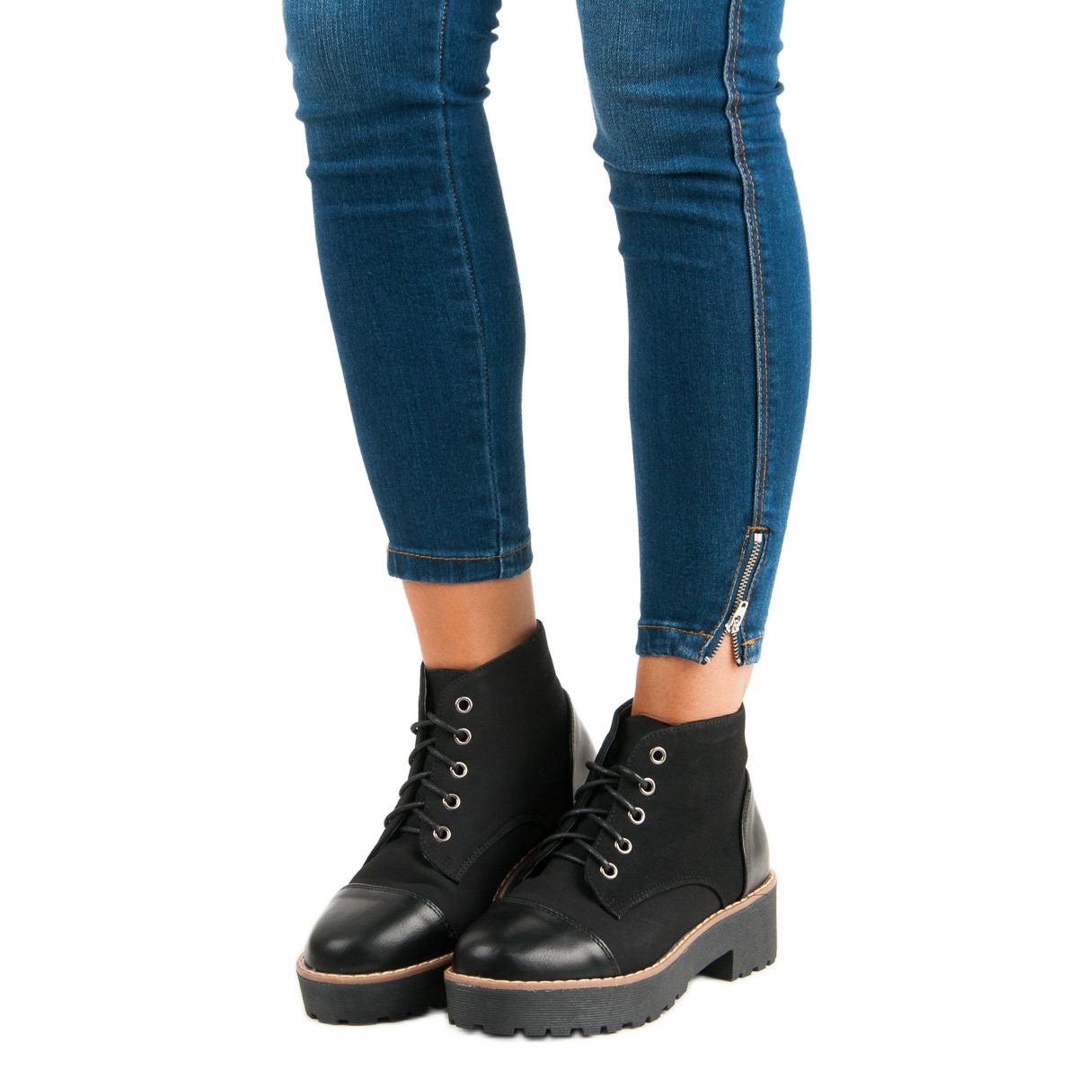 Rockige Worker-Boots in Schwarz sind ein Must-Have in der Garderobe jedes Modeliebhabers. Diese stilvollen Schuhe zeichnen sich durch ein originelles Design aus, das durch Modernität und Charakter beeindruckt. Dank eines dicken, auffälligen 3 cm hohen Absatzes und eines soliden Plateaus ist jeder Schritt in diesen Stiefeln eine Kombination aus Komfort und Mode.