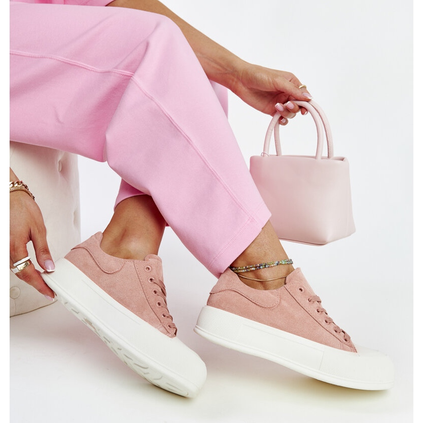 Wir präsentieren Ihnen die rosafarbenen Agathe-Plateau-Sneaker, die die perfekte Ergänzung Ihrer Sommergarderobe darstellen. Aus hochwertigem ökologischem Wildleder gefertigt, vereinen diese stylischen Schuhe modisches Design mit höchstem Tragekomfort. Dank der runden, mit einem Gummieinsatz versteiften Spitze und dem Inneneinsatz aus Textilmaterial bieten die Sneaker auch den ganzen Tag über Komfort.
