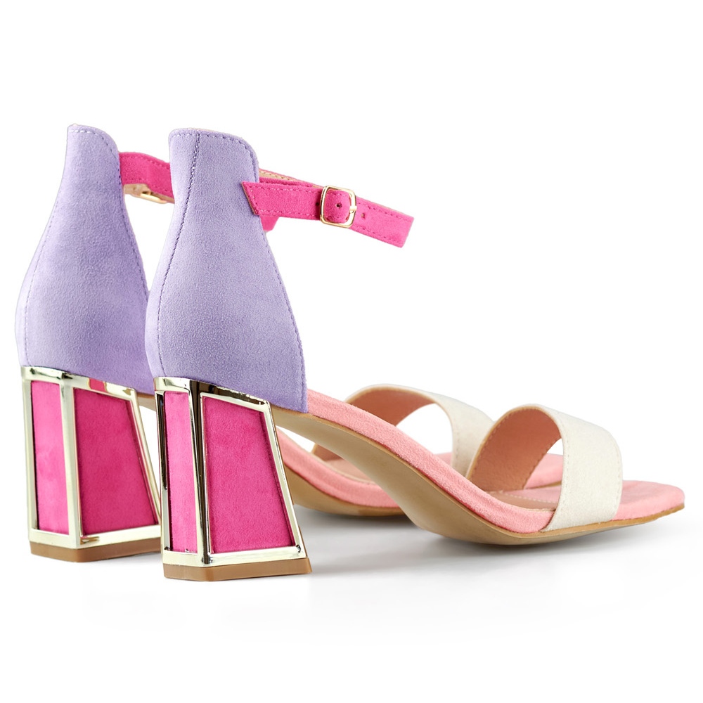 Details: Rosa Damensandalen mit hohen Absätzen und Knöchelverschluss