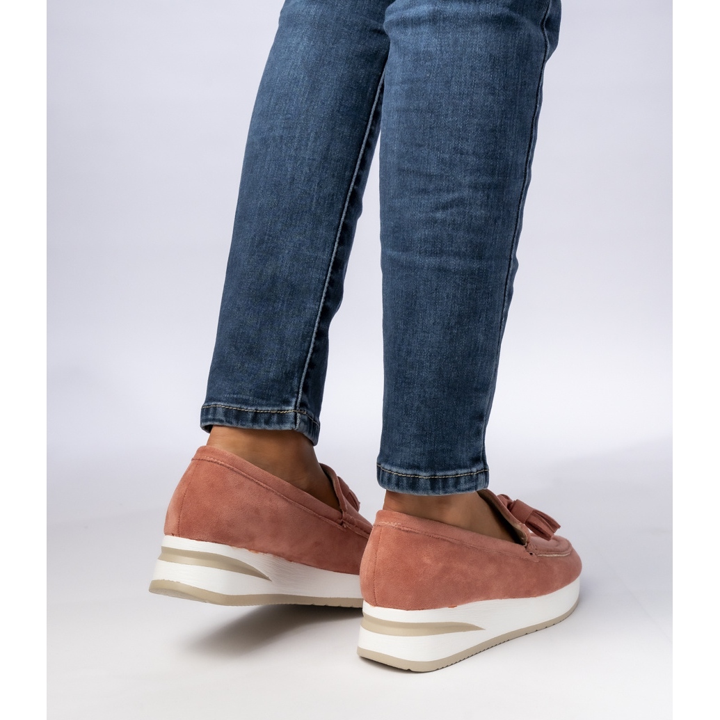 Warten Sie nicht! Entdecken Sie die Welt der Mode mit Frauenmokassins mit Fransen in einem schmutzigen Rosa und kreieren Sie Ihren unvergesslichen Look für jeden Anlass! Jedes Paar wird in der Originalschachtel des Herstellers geliefert, was sie zu einem großartigen Geschenk für einen geliebten Menschen macht. Wählen Sie jeden Tag Qualität, Stil und Komfort!