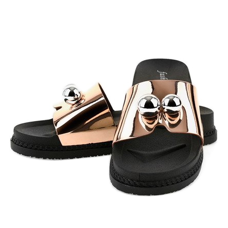 Rosa zehenstegsandalen mit Kugeln 1819 sind die perfekte Wahl für Frauen, die Komfort mit einem modischen Look verbinden möchten. Diese bezaubernden Keilpantoletten zeichnen sich nicht nur durch ihre einzigartige roségoldene Farbe aus, sondern auch durch elegante Details, wie zum Beispiel ungewöhnliche Kugeln, die ihnen Eleganz und Originalität verleihen. Durch die Kombination aus Pink und Schwarz sehen sie äußerst stylisch aus und passen somit perfekt in aktuelle Trends.