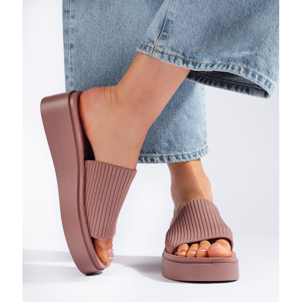 Flip -Flops aus hochwertigem Textilmaterial sorgen für die Haltbarkeit und den Komfort des Tragens. Die Nachahmung der Haut im Schuh sorgt für die Weichheit des Fußes, die offene Ferse und der eingefügte Schnitt machen sie ein echtes Vergnügen. Der 5 -cm -Hochkeil fügt nicht nur eine empfindliche Höhe, sondern auch eine stabile Stabilität hinzu, wodurch diese Flip -Flops zu einer idealen Wahl für lange Spaziergänge oder lässige Treffen mit Freunden sind.