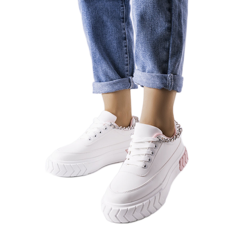Details: Rosa Sneaker mit Kette von Thilda weiß