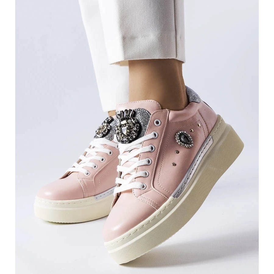 Pink Sneakers auf einem niedrigen Keilkuster des Herstellers D/GMR ist ein Vorschlag, der perfekt in die neuesten Modetrends passt. Das Selma -Modell ist ein Hit dieser Saison und bietet eine ungewöhnliche Kombination aus Stil und Komfort.