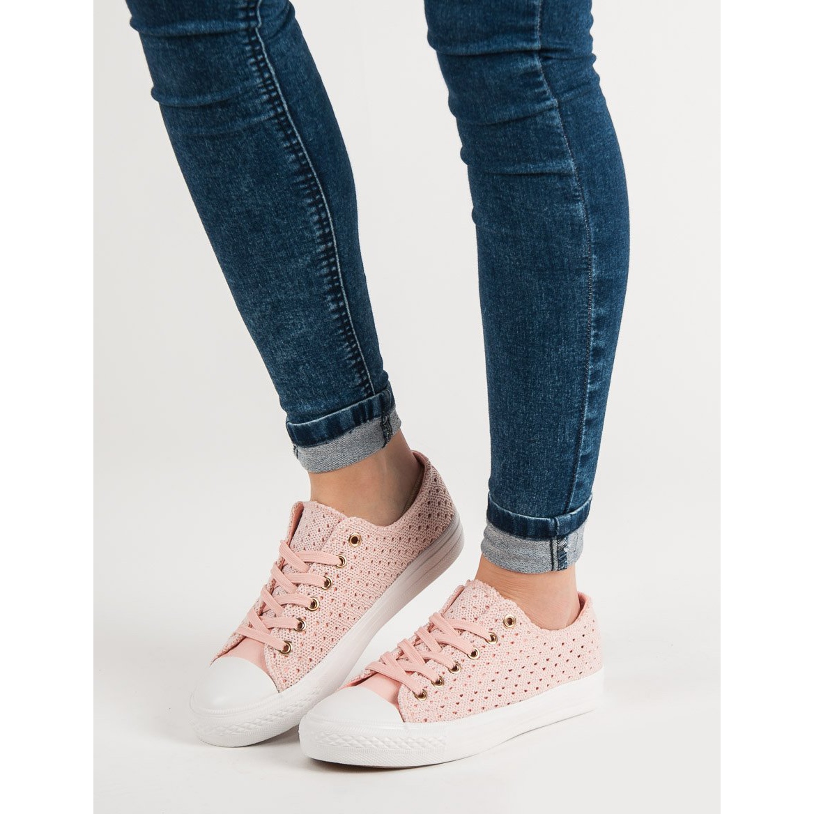 Rosa Textil-Sneaker sind ein ideales Angebot für Frauen, die modisches Design mit Alltagskomfort verbinden möchten. Aus hochwertigen Materialien gefertigt, bieten diese hellrosa Sneaker maximalen Komfort und minimieren gleichzeitig das Risiko schmerzhafter Wunden, was sie zu einer ausgezeichneten Wahl für Menschen mit empfindlichen Füßen macht.