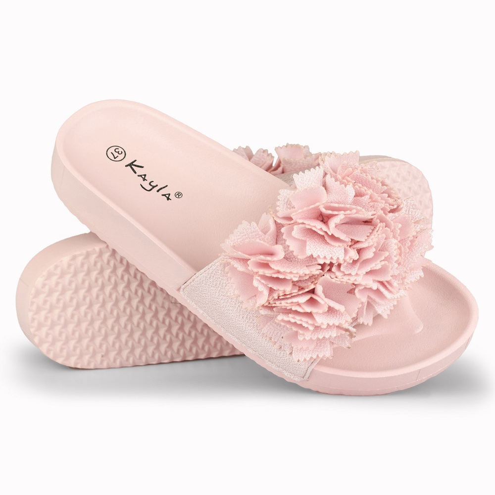 Details: Rosafarbene Blumenhausschuhe von Violett für Damen